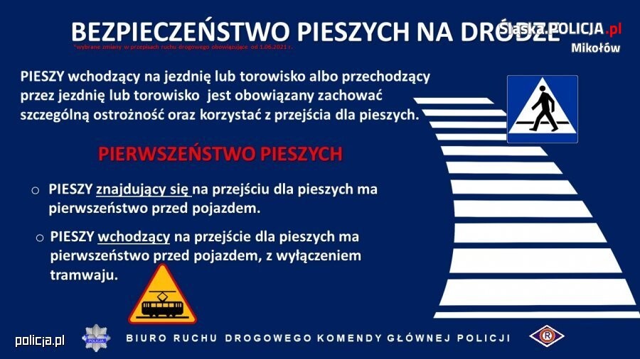 Dzisiaj, mikołowska drogówka prowadzi działania „Bezpieczny pieszy”. Mają one na celu zwiększenie bezpieczeństwa pieszych oraz uświadomienie kierującym samochodami, że piesi również są pełnoprawnymi uczestnikami ruchu drogowego. Nadzorem objęte zostaną miejsca, które są szczególnie niebezpieczne dla pieszych np. przejścia przez ruchliwe jezdnie lub przejścia, na których doszło do potrąceń pieszych. Jednocześnie prowadzone są przedsięwzięcia edukacyjne, w ramach których policjanci przekazują uczestnikom ruchu drogowego informacje o zagrożeniach pieszych na drodze oraz potrzebie pogłębienia znajomości i przestrzegania przepisów prawa. Mundurowi zwracają szczególną uwagę na korzystanie przez pieszych z przejść oraz sposób poruszania się na odcinkach dróg bez wydzielonych chodników.