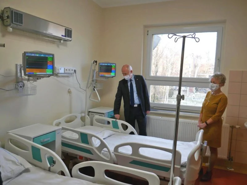 4 izolatki, 10 łóżek covidowych, nowy zbiornik na tlen medyczny. Członkowie Zarządu Powiatu sprawdzali tempo i efekty ostatnich prac modernizacyjnych w Centrum Zdrowia w Mikołowie.
