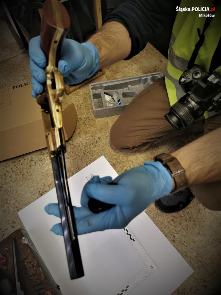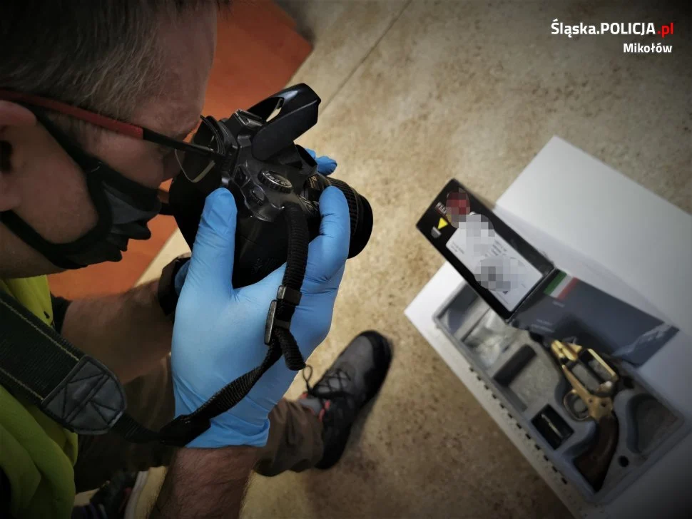 Skierowani na miejsce policjanci potwierdzili zgłoszenie i rozpoczęli ustalenia, które uprawdopodobniłyby wersję pokrzywdzonego. Następnego dnia kryminalni dotarli do podejrzewanego o czyn mężczyzny. W jego mieszkaniu znaleźli broń, którą posłużył się poprzedniego dnia. Znaleziony przez policjantów rewolwer czarnoprochowy oraz zdobyte wcześniej informacje stały się podstawą do zatrzymania jego właściciela.
