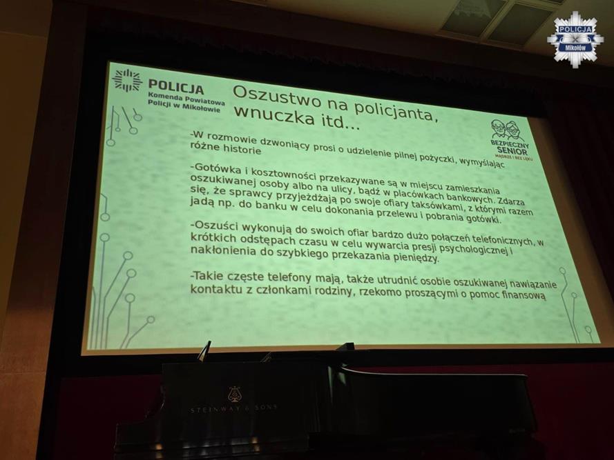 Podczas spotkania, seniorzy zapoznali się z najnowszymi informacjami na temat zagrożeń kryminalnych, z którymi często spotykają się starsze osoby. Mimo licznych kampanii, oszuści nadal wykorzystują metody takie jak „na wnuczka”, „na policjanta” czy „na pracownika ZUS”. Emocje, pośpiech i strach sprawiają, że osoby starsze łatwiej wierzą w historie przestępców, tracąc czasem oszczędności swojego życia.