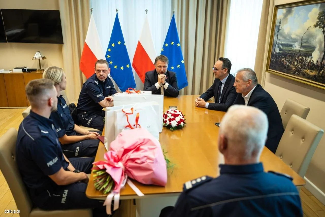 W trakcie spotkania w Ministerstwie Spraw Wewnętrznych i Administracji podziękowali sierż. Dawidowi Furmanowi i st. post. Patrycji Wolny za uratowanie życia dziecka. Dzięki ich szybkiej reakcji, do tragedii nie doszło.