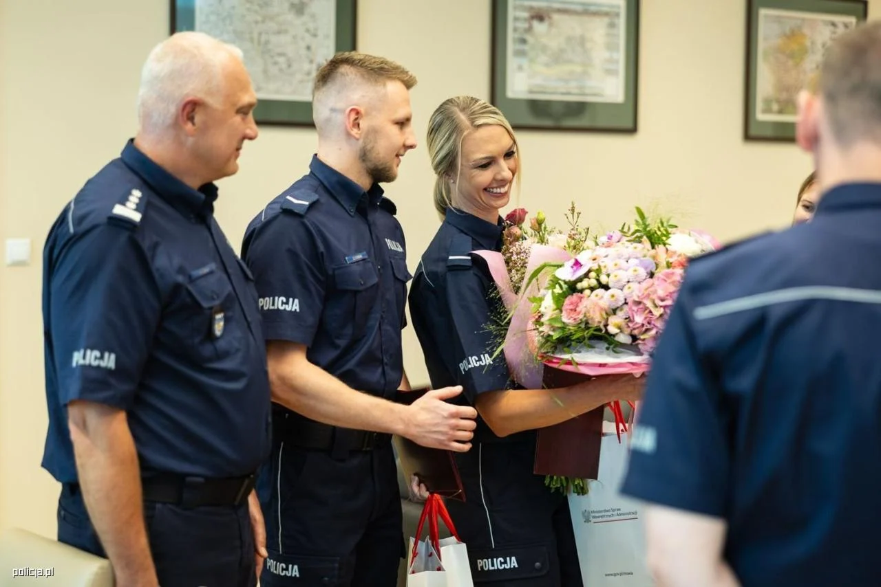 Podziękowania dla funkcjonariuszy miały miejsce także w Komendzie Głównej Policji, gdzie Zastępca Komendanta Głównego Policji nadinsp. dr Rafał Kochańczyk wręczył im listy z gratulacjami, podkreślając ich wzorową postawę oraz profesjonalizm w służbie. Sierż. Dawid Furman i st. post. Patrycja Wolny udowodnili, czym naprawdę jest misja policjanta – pomagać i chronić.