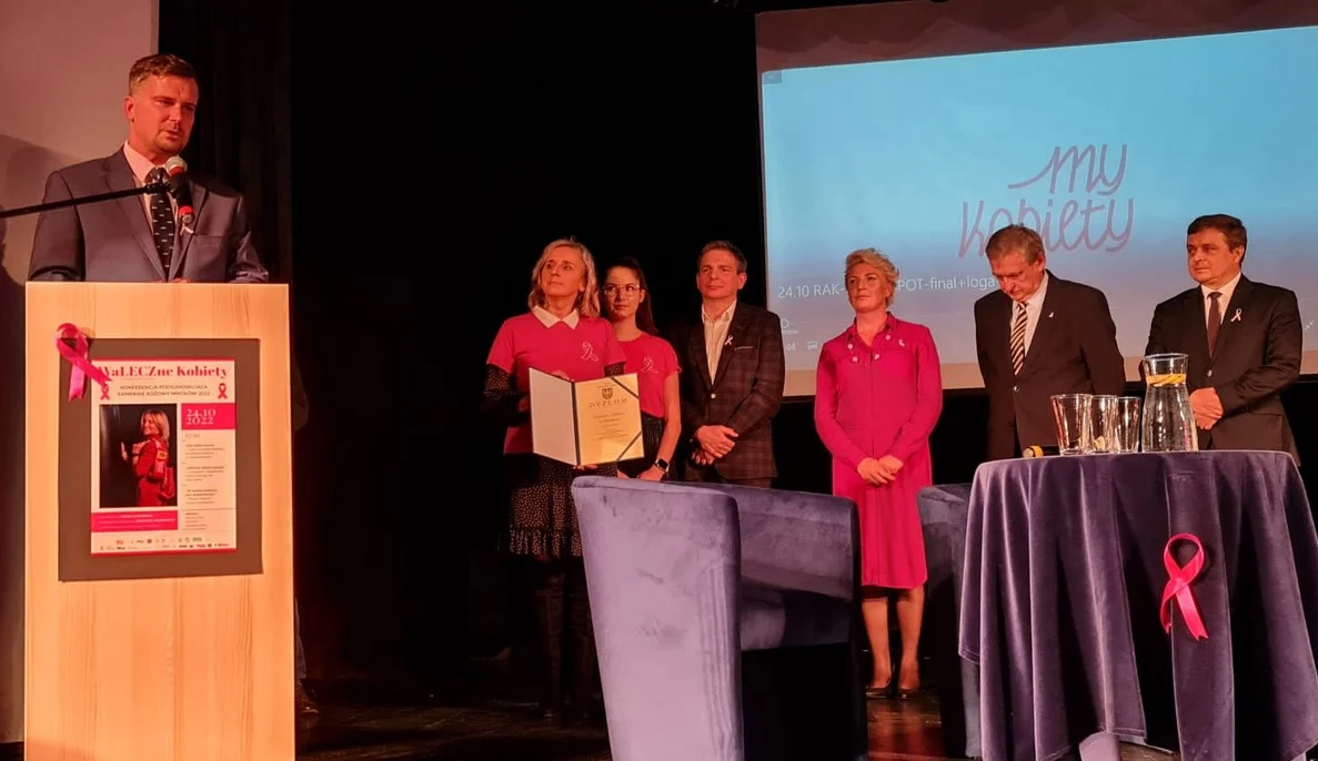 To szczególne wyróżnienie podczas konferencji WaLECZne Kobiety w ramach akcji Różowy Mikołów 2022 odebrał wraz z towarzyszącymi mu pracownikami szpitala prezes dr Cezary Tomiczek.