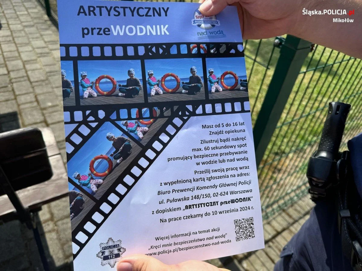 Dzielnicowi z Komendy Powiatowej Policji w Mikołowie oraz Komisariatu Policji w Łaziskach Górnych, w trosce o bezpieczeństwo w rejonach akwenów wodnych, udali się dziś na baseny miejskie na terenie powiatu mikołowskiego. Zgromadzonym przypominali, że woda to żywioł, który może stanowić olbrzymie zagrożenie dla naszego życia i zdrowia. Należy zachować podstawowe zasady bezpieczeństwa i rozsądek. Oprócz cennych porad mundurowi informowali także o konkursie plastyczno – filmowy pn. „Artystyczny-przeWODNIK”, którego celem jest promowanie odpowiedzialnych postaw osób przebywających nad wodą oraz poszerzenie wiedzy na temat odpowiedzialności związanej z naruszeniem obowiązujących przepisów. To jednak niejedyne tematy poruszane przez funkcjonariuszy. Oprócz bezpieczeństwa nad wodą, czyli odpowiednich zachowań podczas kąpieli i przebywania w rejonie akwenów oraz reagowania na sygnały dawane przez ratowników wodnych policjanci rozmawiali z dziećmi o tym, jak unikać zagrożeń i bezpiecznie spędzać wakacyjny czas podczas zabawy na przykład na podwórku.