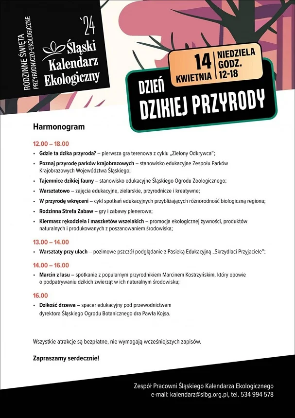 Nie zabraknie również możliwości degustacji i zakupu ekologicznej żywności oraz produktów naturalnych na kiermaszu rękodzieła. W ramach wydarzenia odbędą się również wyjątkowe wydarzenia, takie jak warsztaty przy ulach, gdzie będzie można podglądać pszczółki, oraz spotkanie z popularnym przyrodnikiem Marcinem Kostrzyńskim, który opowie o tajnikach obserwacji dzikich zwierząt. Nie przegapcie również spaceru edukacyjnego „Dzikość drzewa” pod przewodnictwem dyrektora Śląskiego Ogrodu Botanicznego.