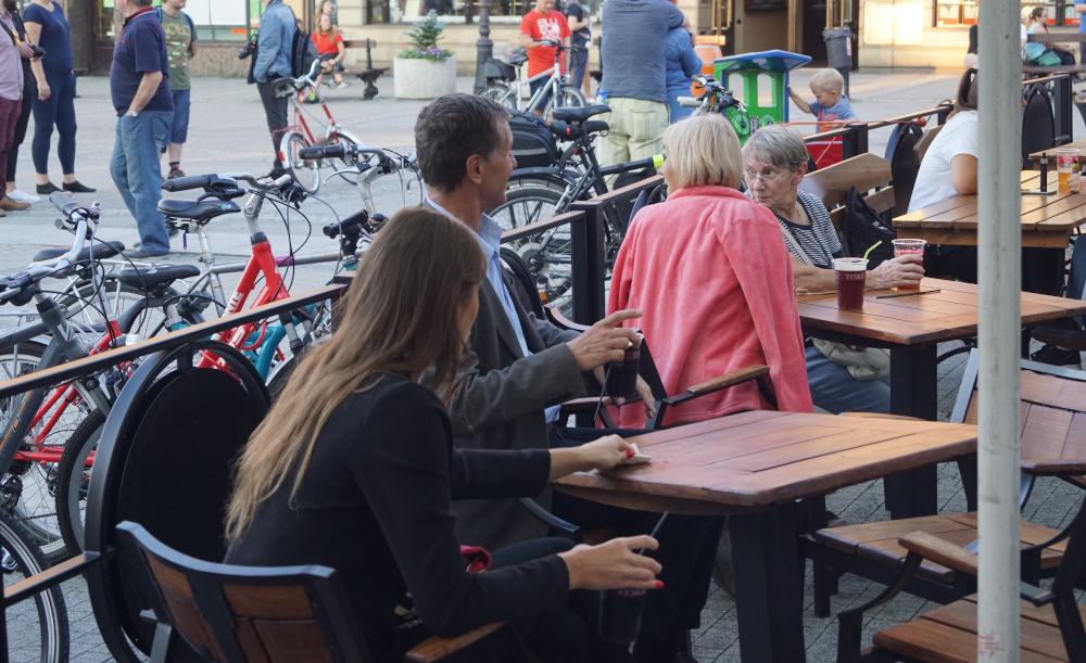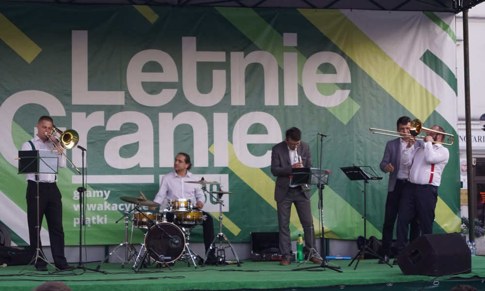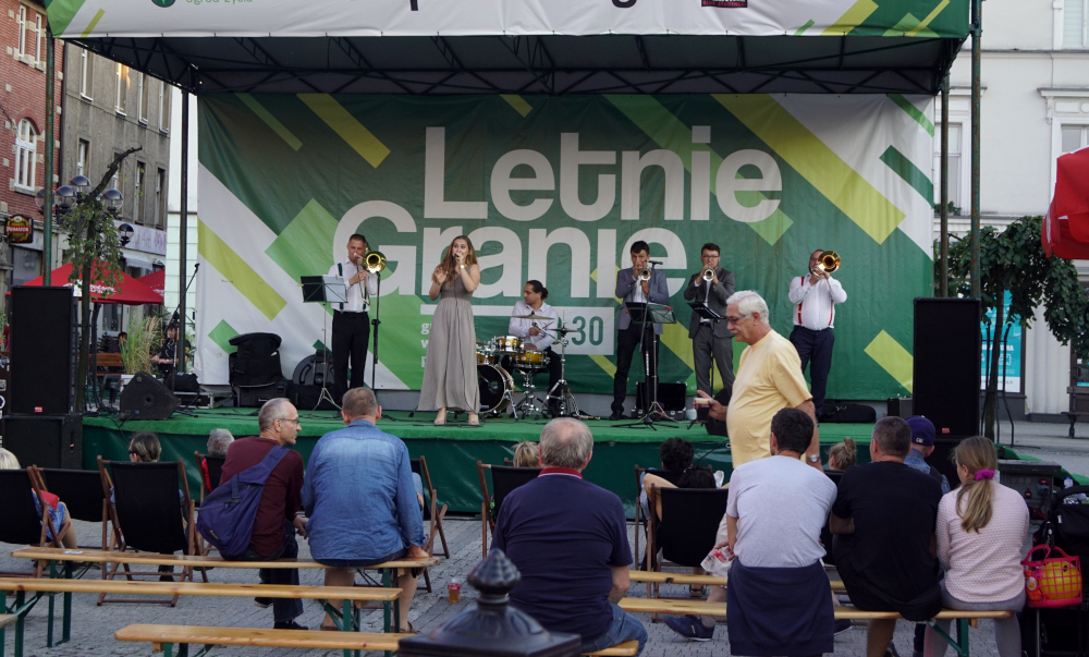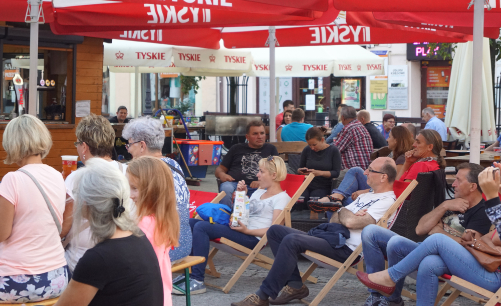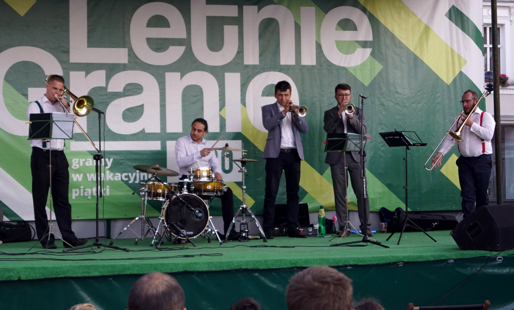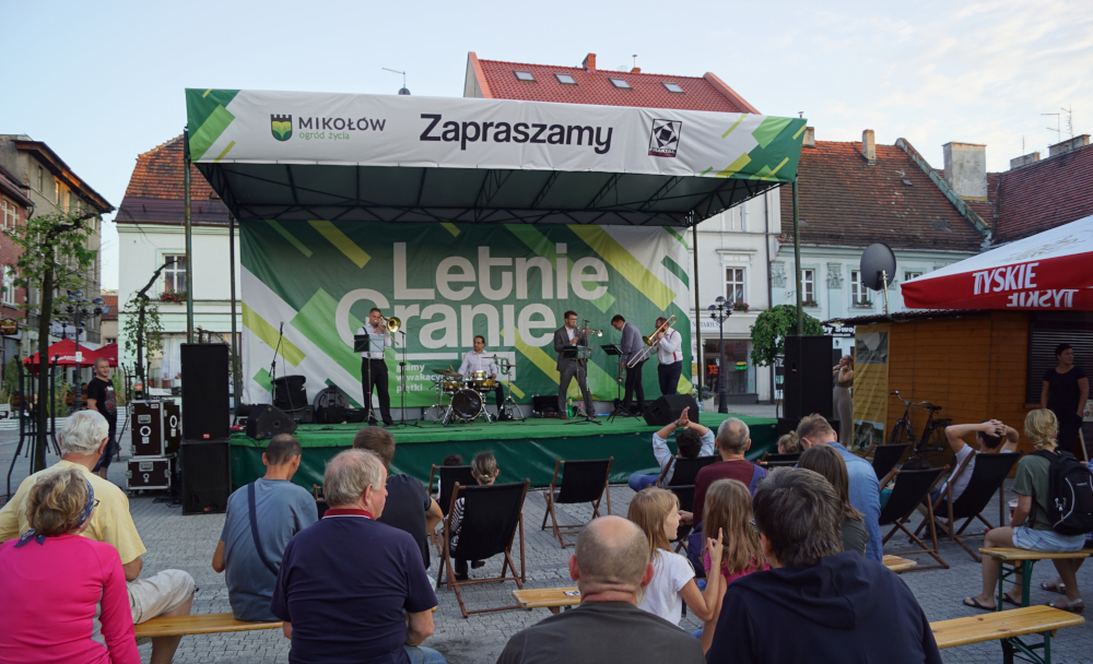 Po kilku dniach deszczu i zupełnie niekojarzącej się z latem pogody w piątek wreszcie wyszło słońce i zagościło na mikołowskim rynku aż do późnego wieczoru. Dzięki temu organizatorzy Letniego Grania – UM Mikołów – nie mogli narzekać na kiepską frekwencję. Choć tł umów nie uświadczyliśmy to zainteresowanie występem zaproszonych gości: Silesian Brass Quartet z Tarnowskich Gór było duże.