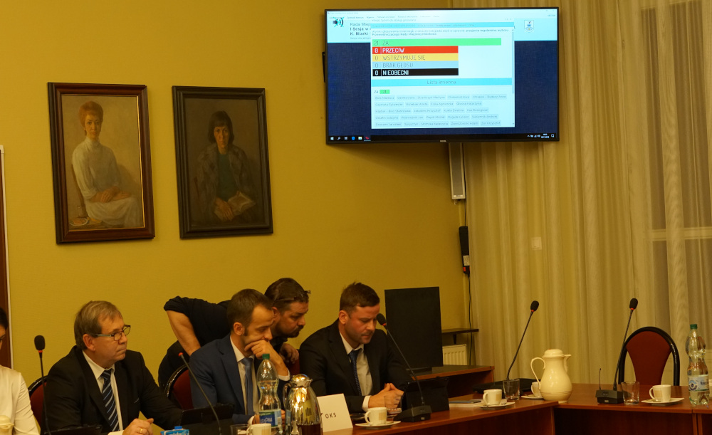 Sesję dochwili wybrania nowego przewodniczącego Rady Miejskiej poprowadził, zgodnie z obyczajem, radny senior – Jan Przewoźnik wraz z komisarz wyborczą, Iwoną Kurdziel-Drzewiecką. Podczas pierwszego spotkania radnych wprowadzono również nowość – od tej pory głosowanie nad uchwałamibędzie odbywało się elektronicznie, dzięki dostarczonym radnym tabletom, wyposażonym w specjalną aplikację.