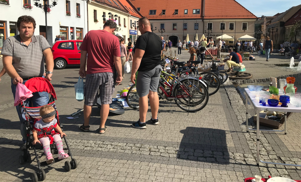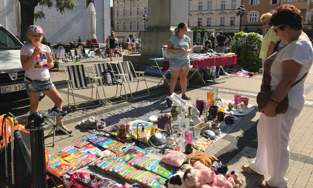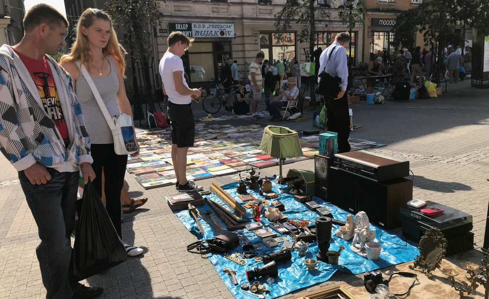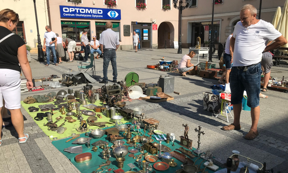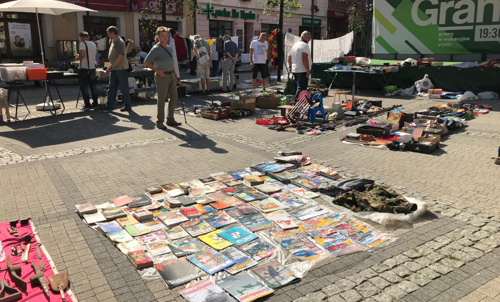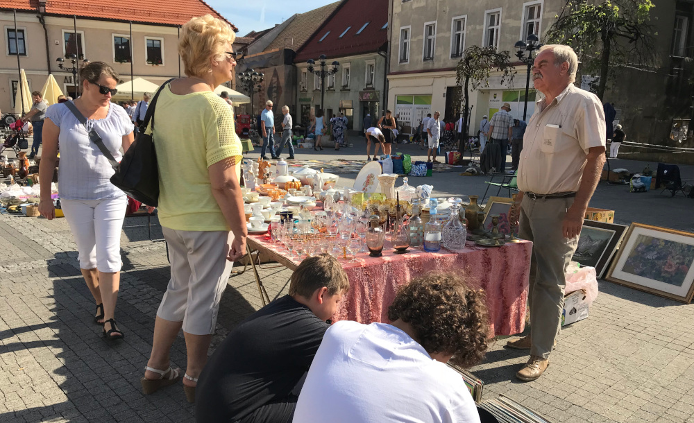 Na płycie rynku pojawiło się wielu wystawców. Mogliśmy podziwiać wyjątkową porcelanę, obrazy, stare zegary, zegarki i aparaty fotograficzne, biżuterię, galanterię skórzaną, maszyny do pisania i do szycia, mosiężne i miedziane przedmioty, sprzęt grający i nieodzowne – książki, militaria i numizmatykę. Furorę wśród odwiedzających zrobił natomiast motocykl z bocznym wózkiem.