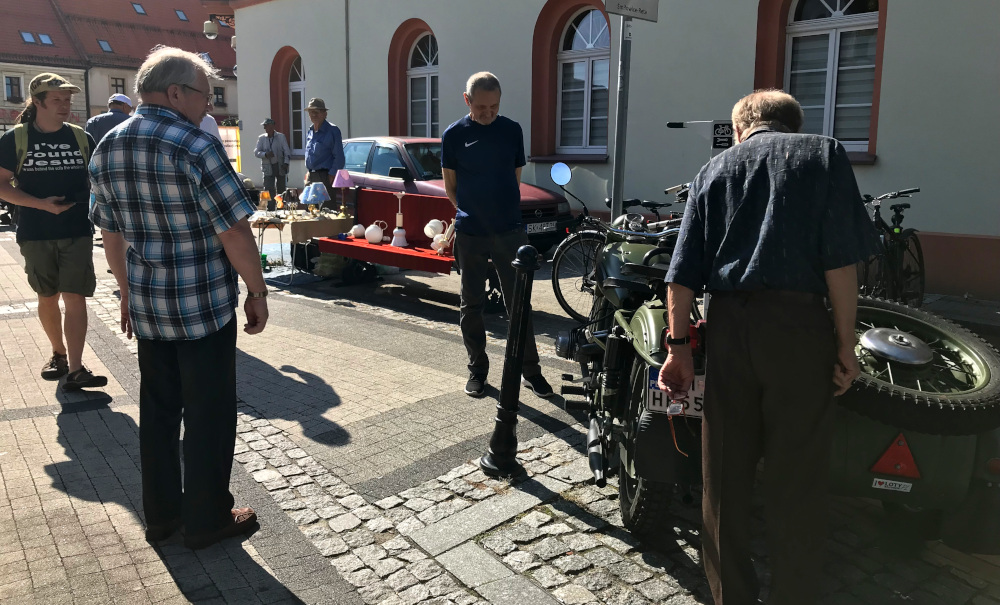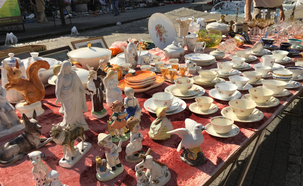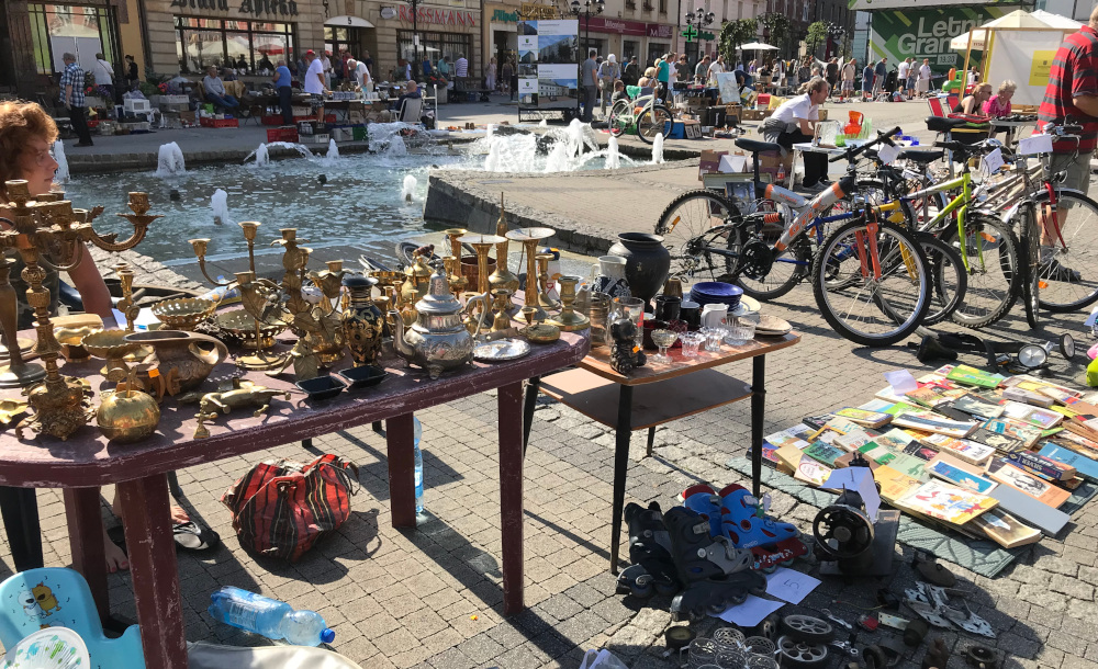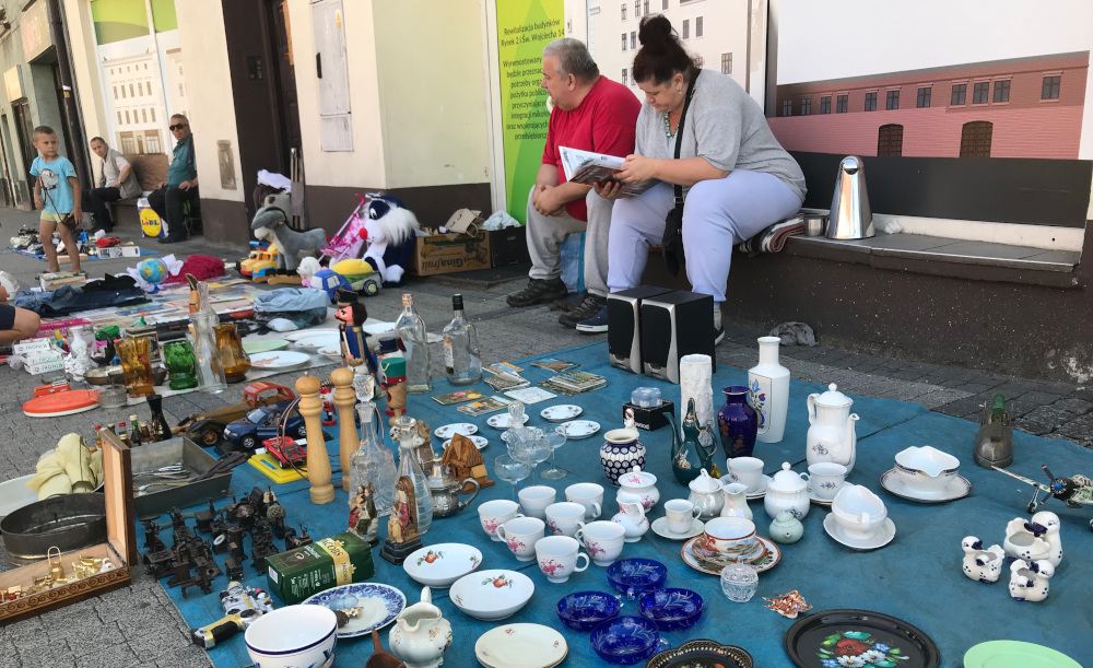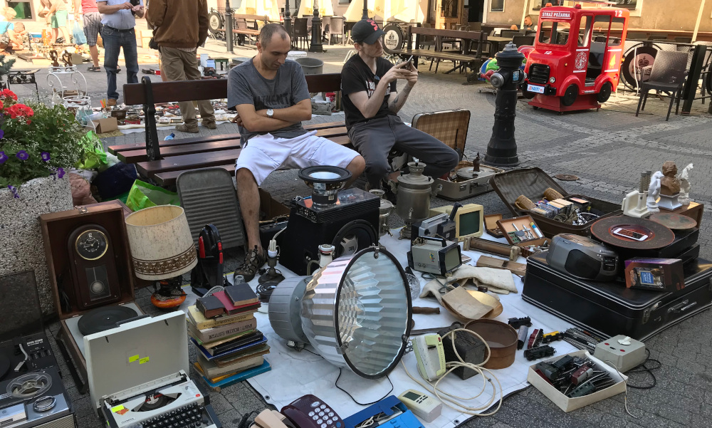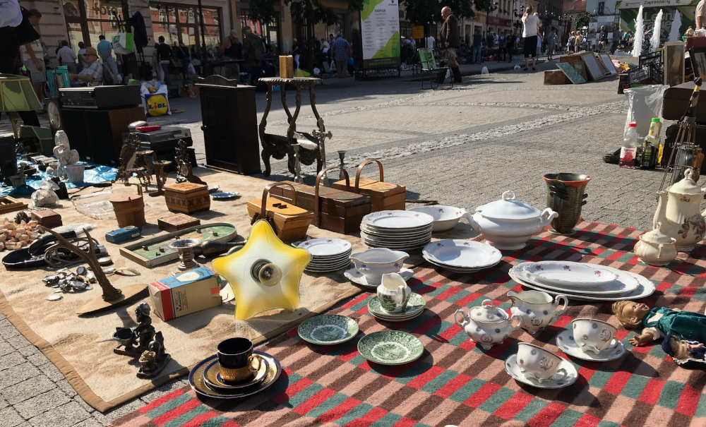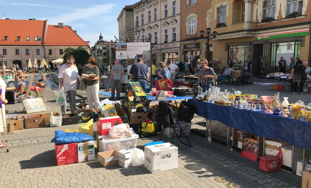 Na płycie rynku pojawiło się wielu wystawców. Mogliśmy podziwiać wyjątkową porcelanę, obrazy, stare zegary, zegarki i aparaty fotograficzne, biżuterię, galanterię skórzaną, maszyny do pisania i do szycia, mosiężne i miedziane przedmioty, sprzęt grający i nieodzowne – książki, militaria i numizmatykę. Furorę wśród odwiedzających zrobił natomiast motocykl z bocznym wózkiem.