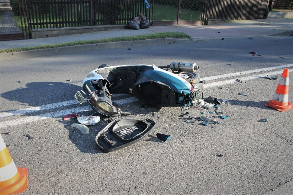 Kierująca skuterem marki giantco nie zachowała ostrożności w trakcie manewru omijania innego pojazdu, doprowadzając tym samym do kolizji.