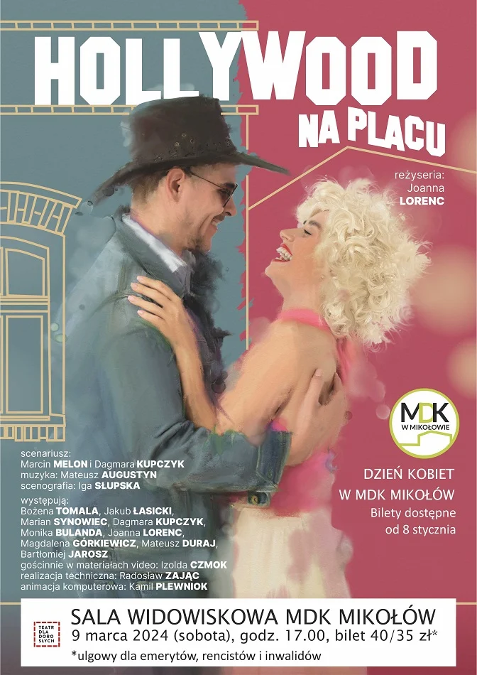 W sobotę, 9 marca, MDK w Mikołowie zaprasza na znakomity spektakl z okazji Dnia Kobiet – „Hollywood na placu” w wykonaniu Teatru dla Dorosłych z Bierunia, który ostatnio zachwycił widzów przedstawieniem „Chop od mojij baby”.