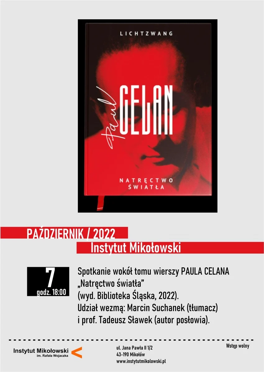 Instytut Mikołowski zaprasza na spotkanie wokół tomu wierszy Paula Celana