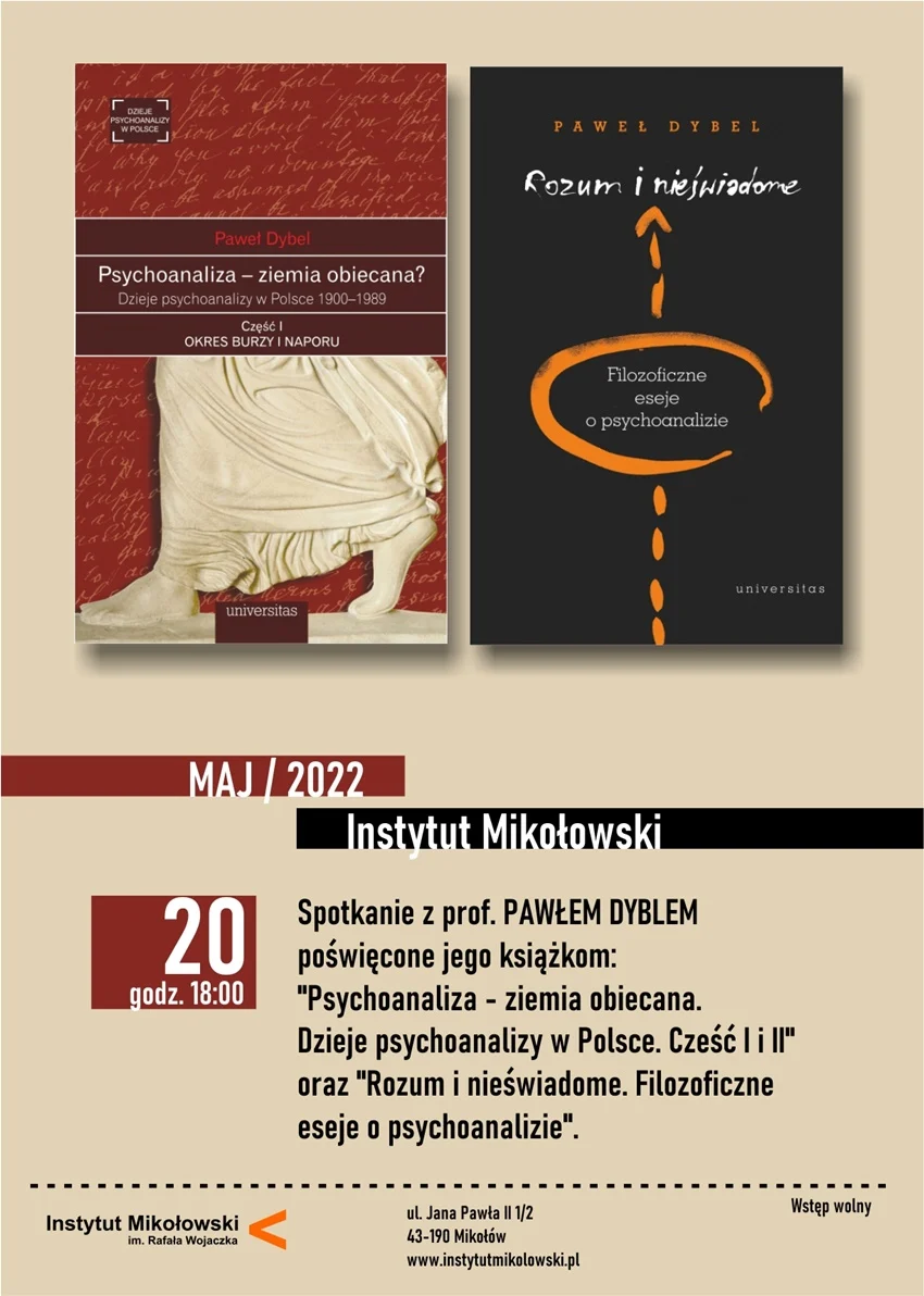 Spotkanie będzie poświęcone jego książkom: „Psychoanaliza – ziemia obiecana. Dzieje psychoanalizy w Polsce. Cześć I i II” oraz „Rozum i nieświadome. filozoficzne eseje o psychoanalizie”.