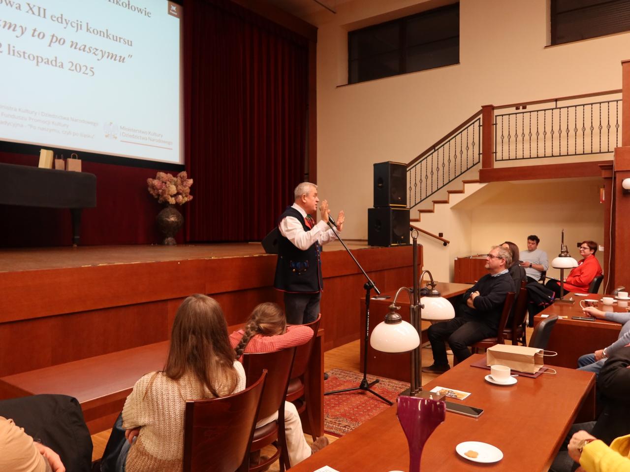 Gala finałowa XII edycji konkursu „Napiszmy to po naszymu” zgromadziła w sobotnie południe pasjonatów śląskiej godki – zarówno dzieci, jak i dorosłych. Wydarzenie, prowadzone przez Agnieszkę Wróbel, odbyło się w wyjątkowej atmosferze, gdzie tematem przewodnim była „Śląsko Wilijo”.