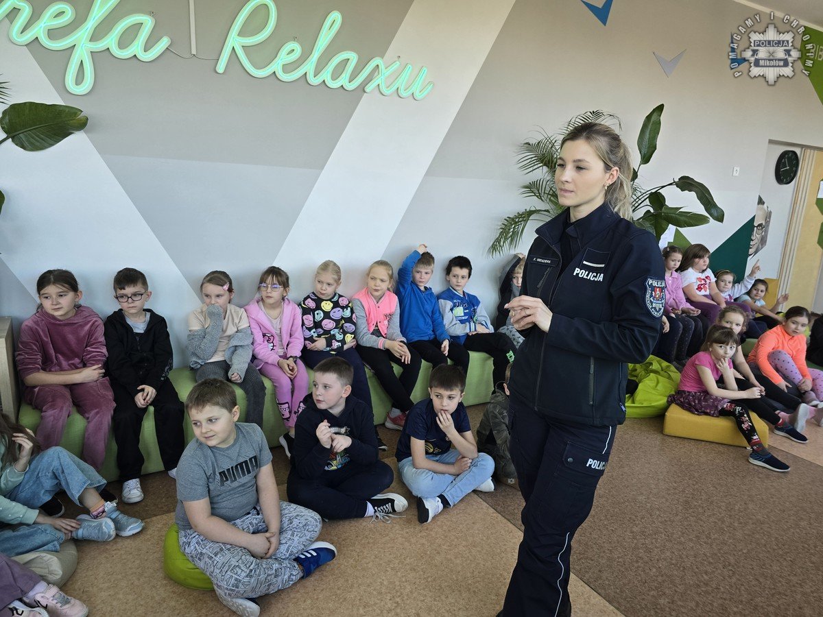 Lekcja bezpieczeństwa przed feriami – policjanci w SP nr 5 w Mikołowie