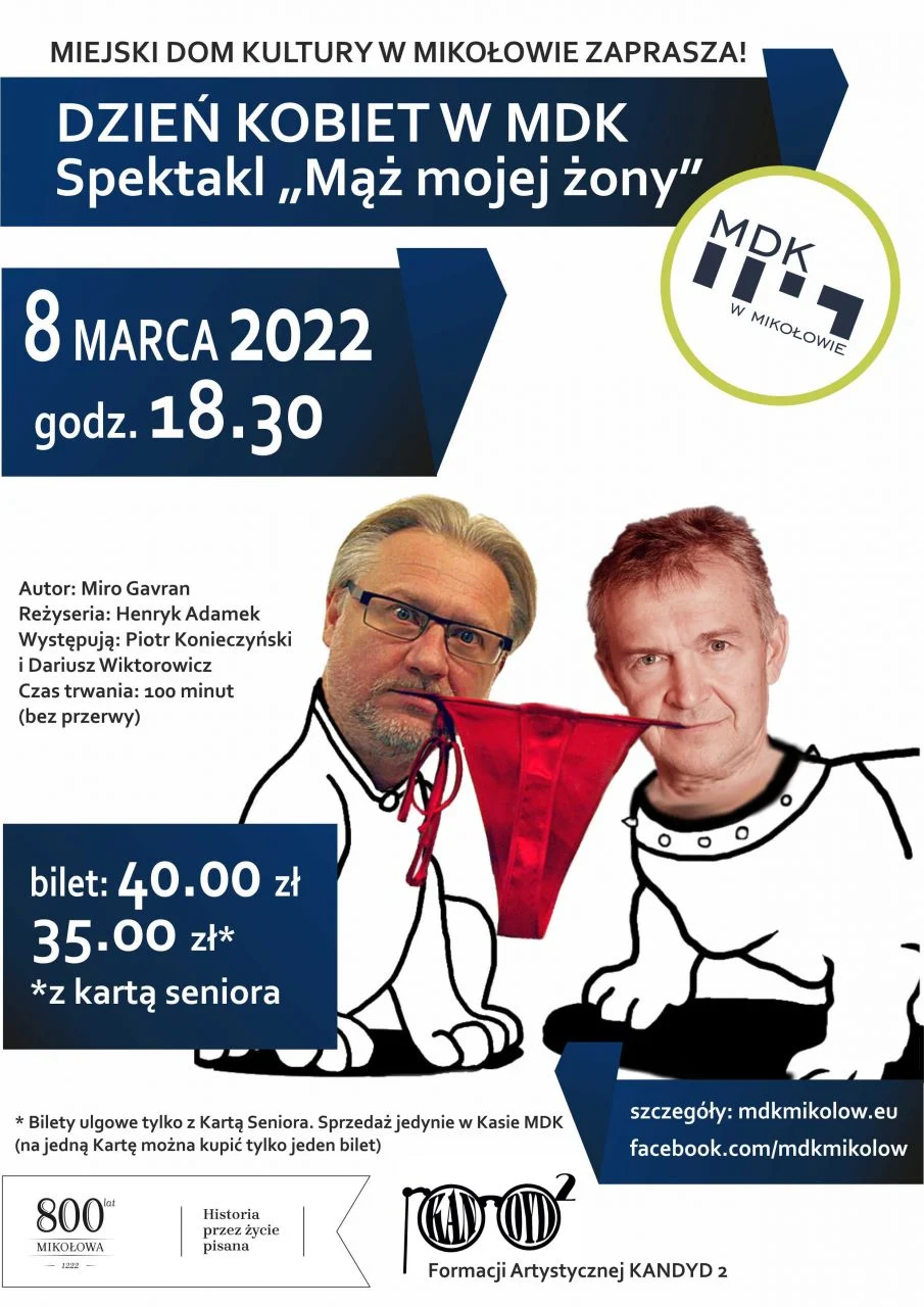 Miejski Dom Kultury w Mikołowie zaprasza we wtorek 8 marca na brawurową komedię Miro Gavrana. Jest to wyjątkowa propozycja i wspaniały prezent na Dzień Kobiet!