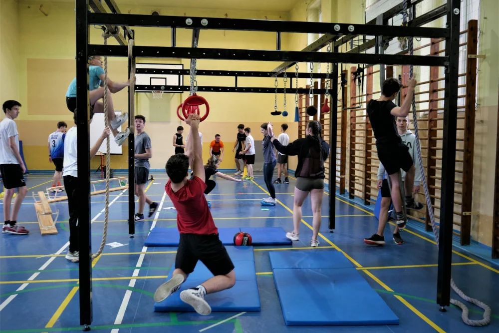 W sali gimnastycznej w Miarce rozstawiono we wtorek zręcznościowy tor, na którym pod okiem mistrza OCR (Obstacle Course Racing,czyli wyścigów z przeszkodami) licealiści mogli poznać techniki pokonywania przeszkód równoważnych, siłowych oraz zwinnościowych, trenowali również siłę chwytu. Swoich sił na torze spróbował także starosta.