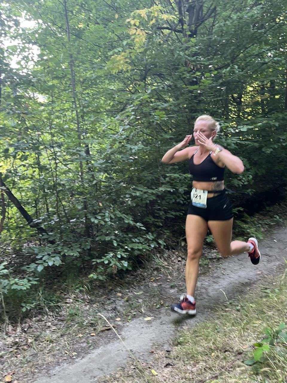 Towarzyszący upał dawał się we znaki uczestnikom, zwłaszcza przy podbiegach na samej hałdzie. Na szczęście znaczna część trasy poprowadzona została w terenie leśnym, gdzie biegacze mogli się schronić w cieniu drzew.