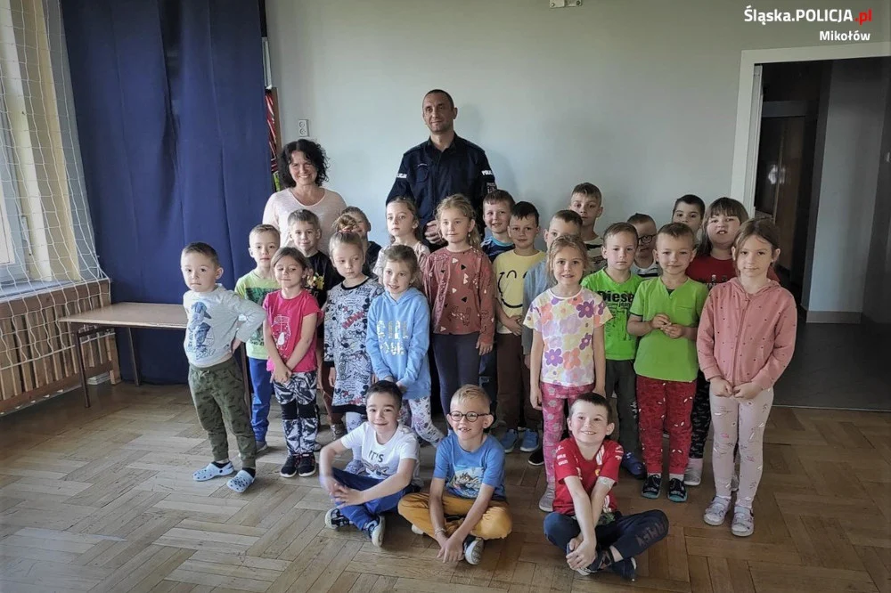 Policyjni profilaktycy z mikołowskiej jednostki odwiedzili wychowanków jednego z miejscowych przedszkoli. Dzieci z grup „Jeżyki i „Zajączki” poznały szczegóły dotyczące zawodu policjanta oraz kilka zasad w zakresie bezpiecznego przechodzenia przez jezdnię. Przedszkolaki miały za zadanie pomóc „Zebrze przejść przez pasy”.