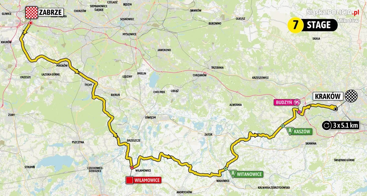 Kolarze przejadą ulicami Ornontowic: Zwycięstwa, Dworcowa oraz Mikołowa: Spyry, ks. Górka, Sosnowa, Zamkowa, Wojska Polskiego i wjadą na „wiślankę„, tj. DK 81 (ulica Cieszyńska – kierunek Katowice). Następnie, za stacją paliw BP, zjadą na DK 44 – kierunek Tychy aż do tzw. Górki Mikołowskiej, do granicy z Tychami.