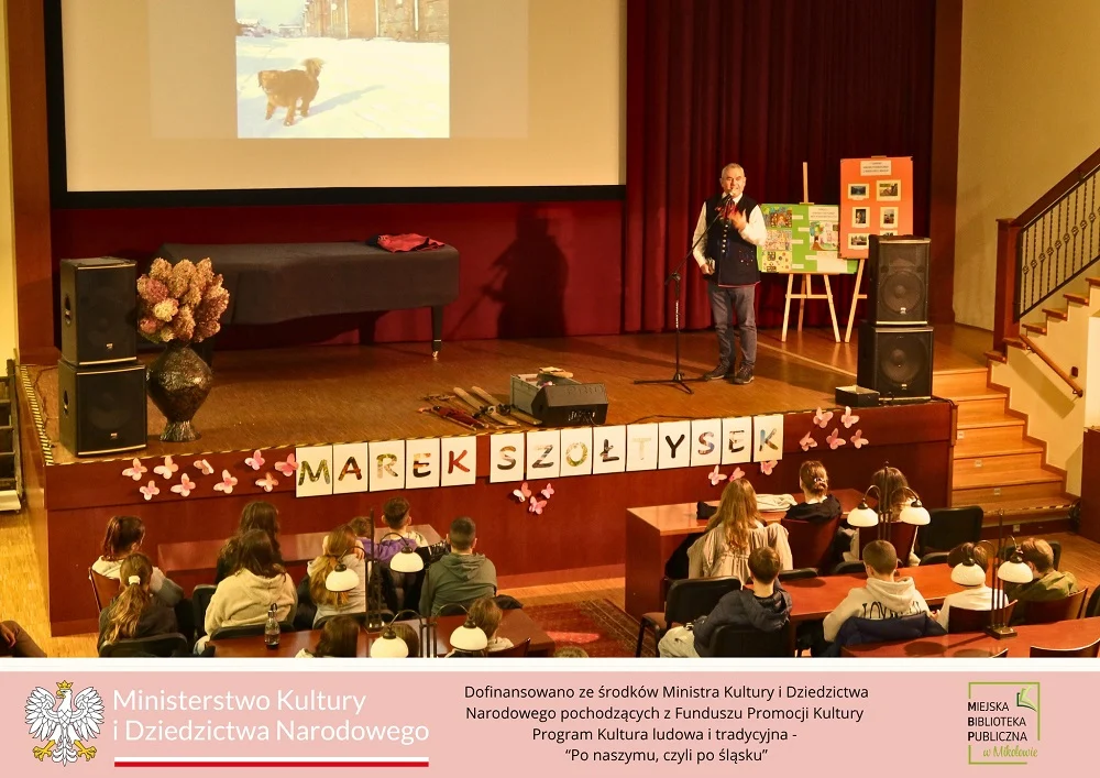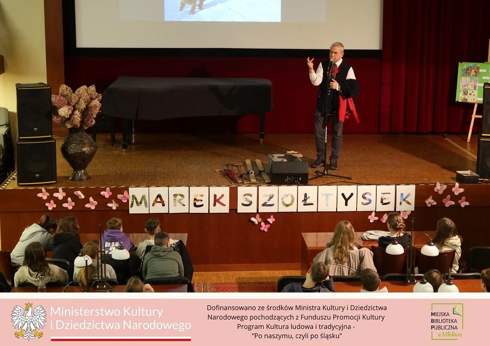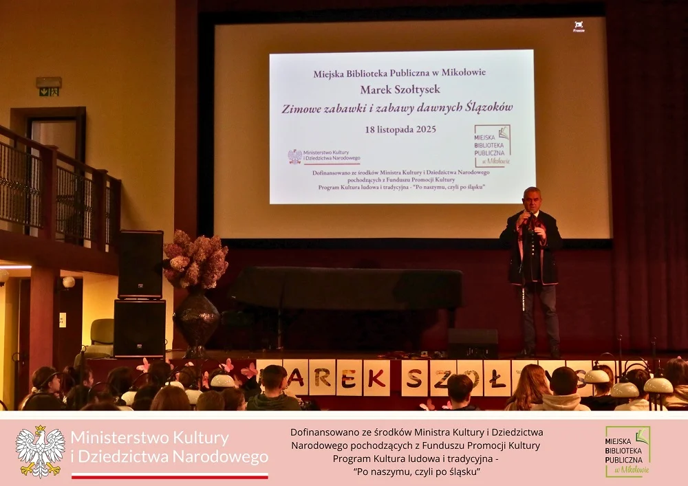Mikołowska Miejska Biblioteka Publiczna gościła Marka Szołtyska, który poprowadził spotkanie autorskie pt. „Zimowe zabawki i zabawy dawnych Ślązoków”. W wydarzeniu wzięli udział uczniowie klas 8a i 6b z Szkoły Podstawowej nr 4 im. Marii Konopnickiej oraz klasy 7a i 7b z Szkoły Podstawowej nr 10 im. Jerzego Kukuczki w Mikołowie.