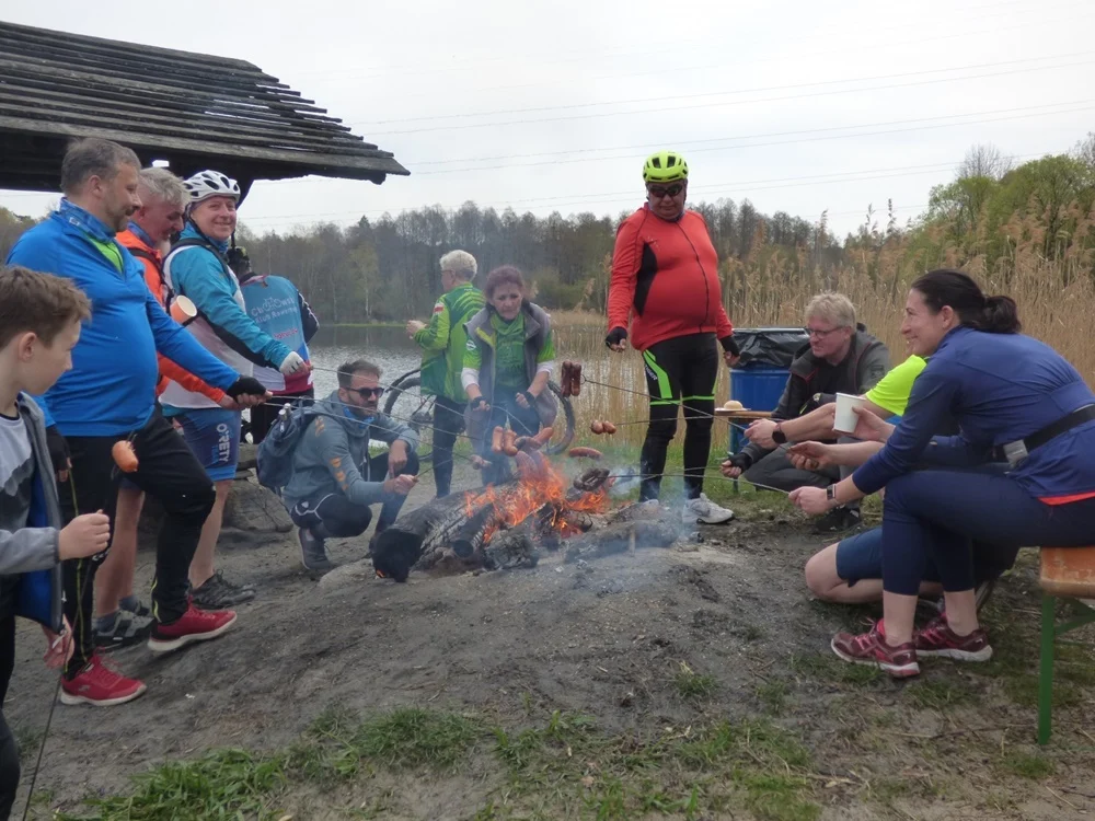 W miejscu docelowym – na Stargańcu – na wszystkich rowerzystów czekało już ognisko, na którym można było usmażyć kiełbaski. Każdy uczestnik mógł odpocząć oraz „nadrobić spalone kalorie” – oprócz kiełbasek można było zjeść również „coś słodkiego„.