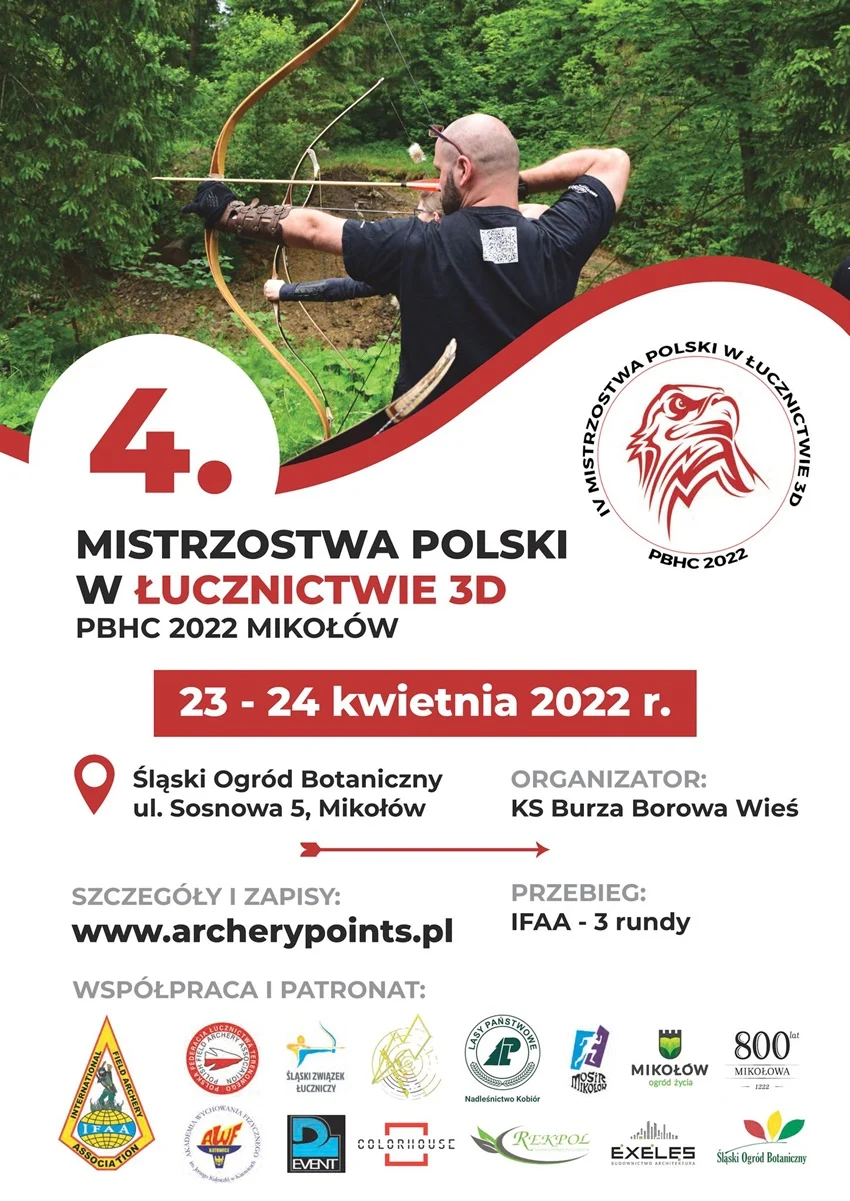 Już niebawem – 23 i 24 kwietnia br. – na terenie Śląskiego Ogrodu Botanicznego w Mikołowie (ul. Sosnowa 5) odbędą się IV Mistrzostwa Polski w łucznictwie 3D PBHC 2022.