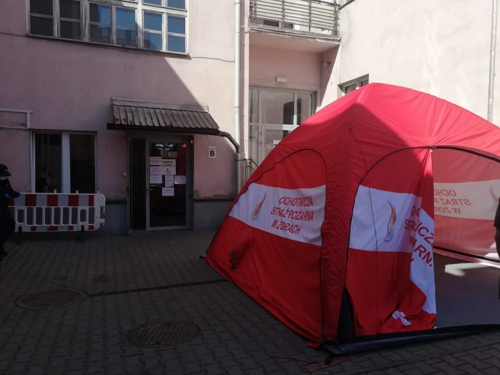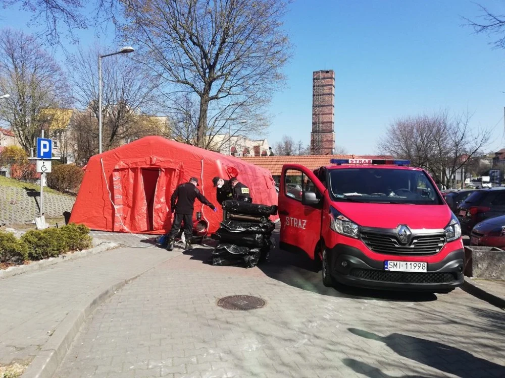 Specjalne strażackie namioty stanęły przed Centrum Zdrowia w Mikołowie oraz mikołowskim Szpitalem św. Józefa.