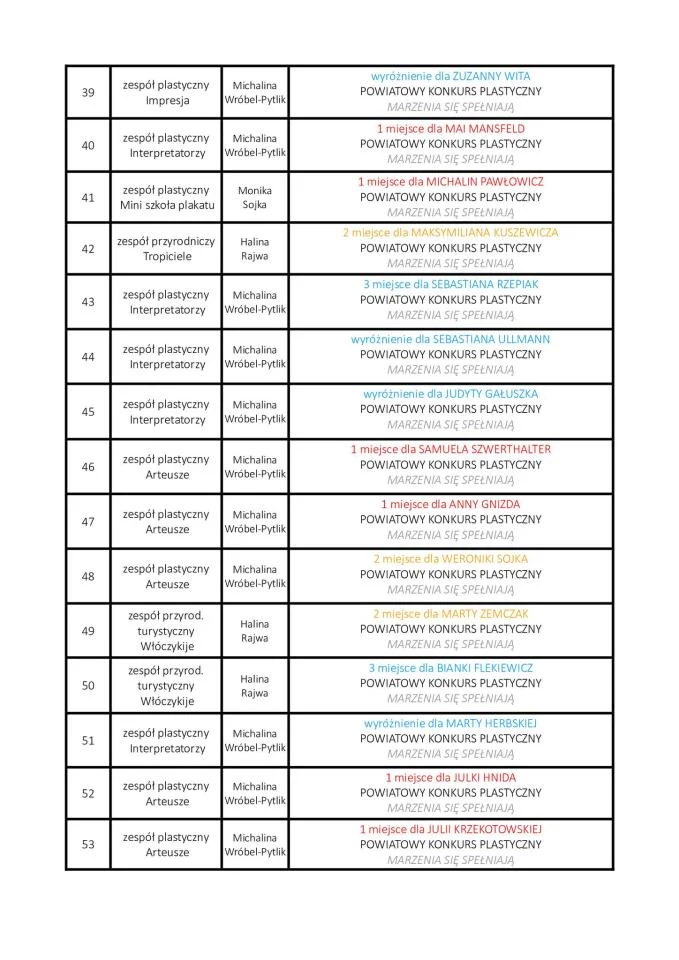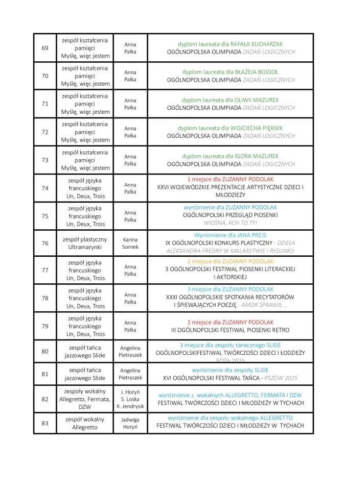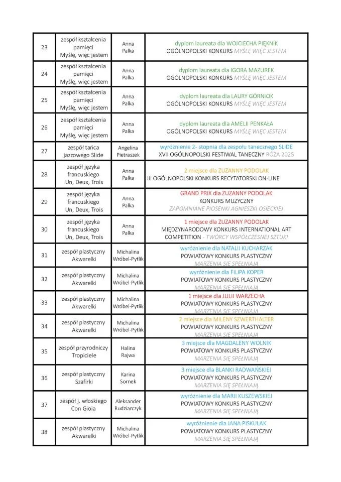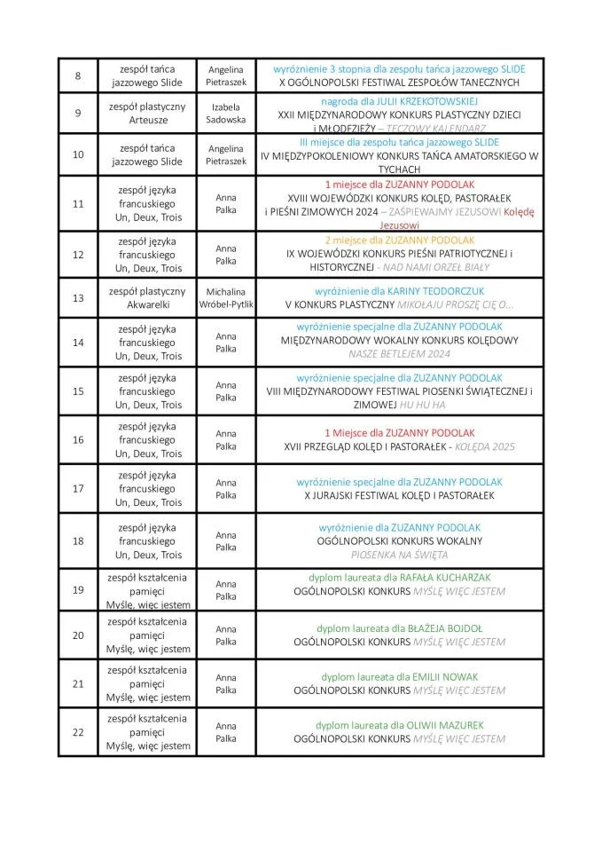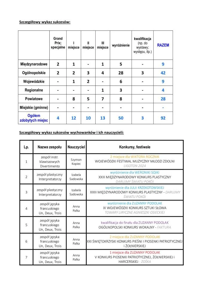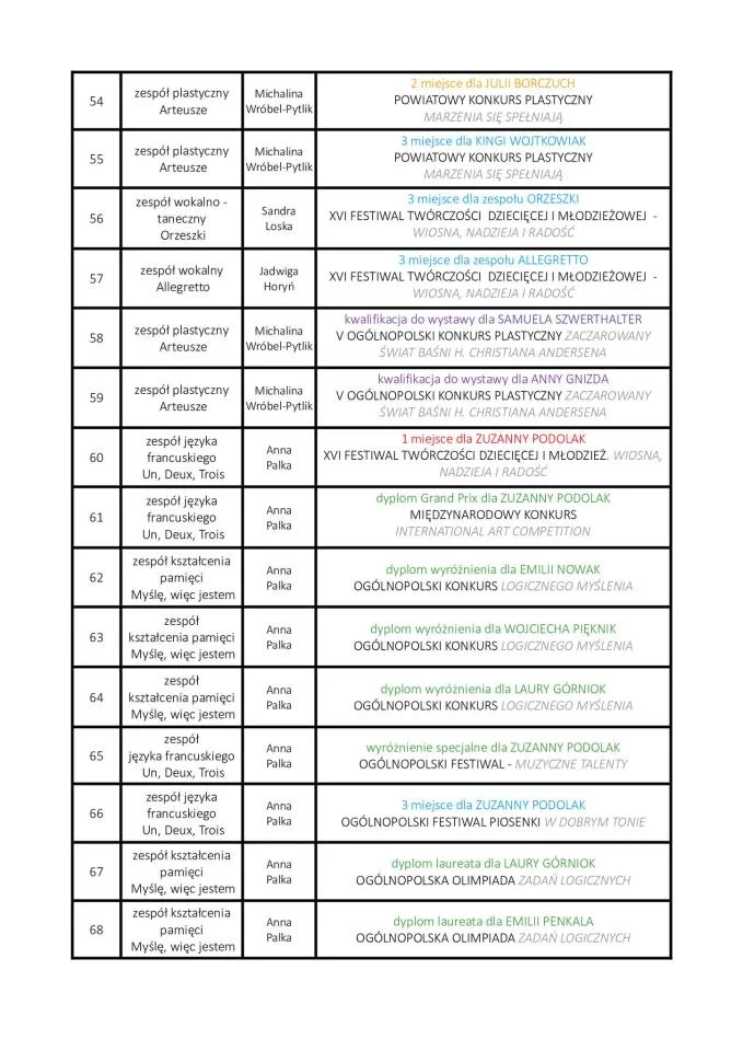 Sukcesy młodych talentów są niezaprzeczalne – nasi podopieczni zdobyli Grand Prix czterokrotnie, w tym dwukrotnie na imprezach międzynarodowych. 12 razy zdobyli pierwsze miejsca, 10 razy drugie oraz 13 razy trzecie miejsca, a także otrzymali 50 wyróżnień.
