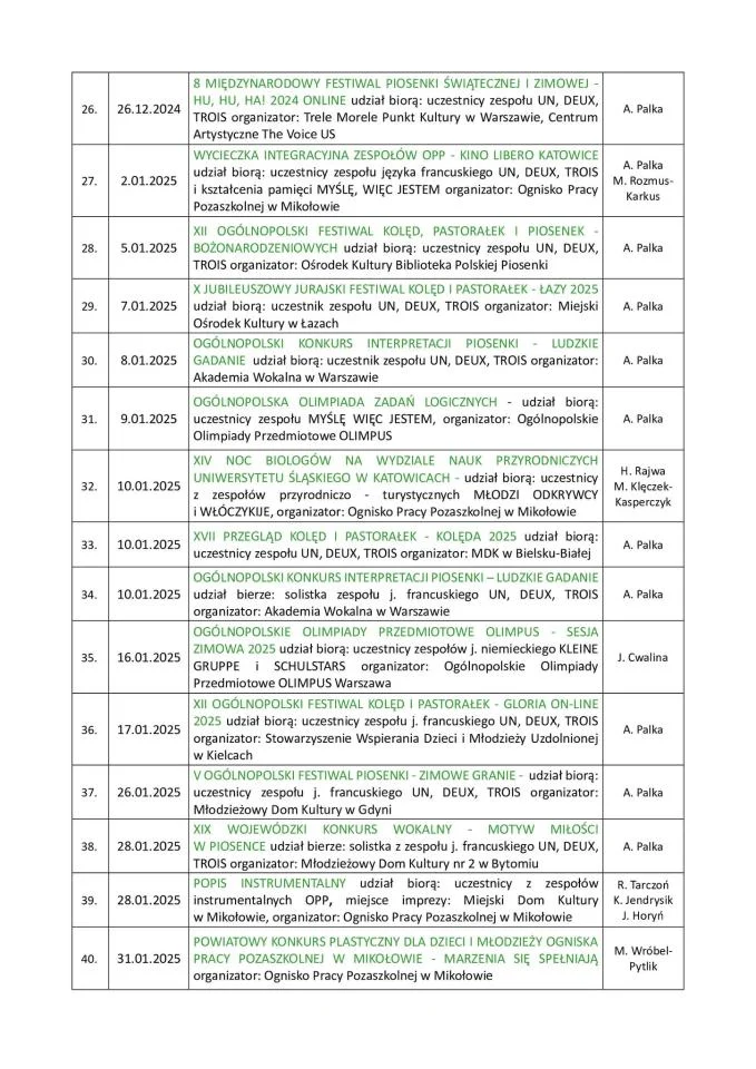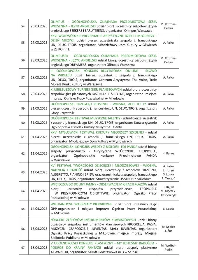 Więcej szczegółów o wydarzeniach i sukcesach Ogniska Pracy Pozaszkolnej można znaleźć na stronie www.opp.mikolowski.pl.