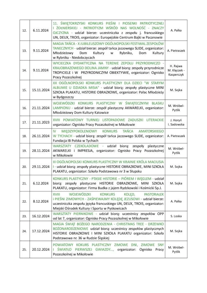 Imprezy i konkursy w roku szkolnym 2024/2025