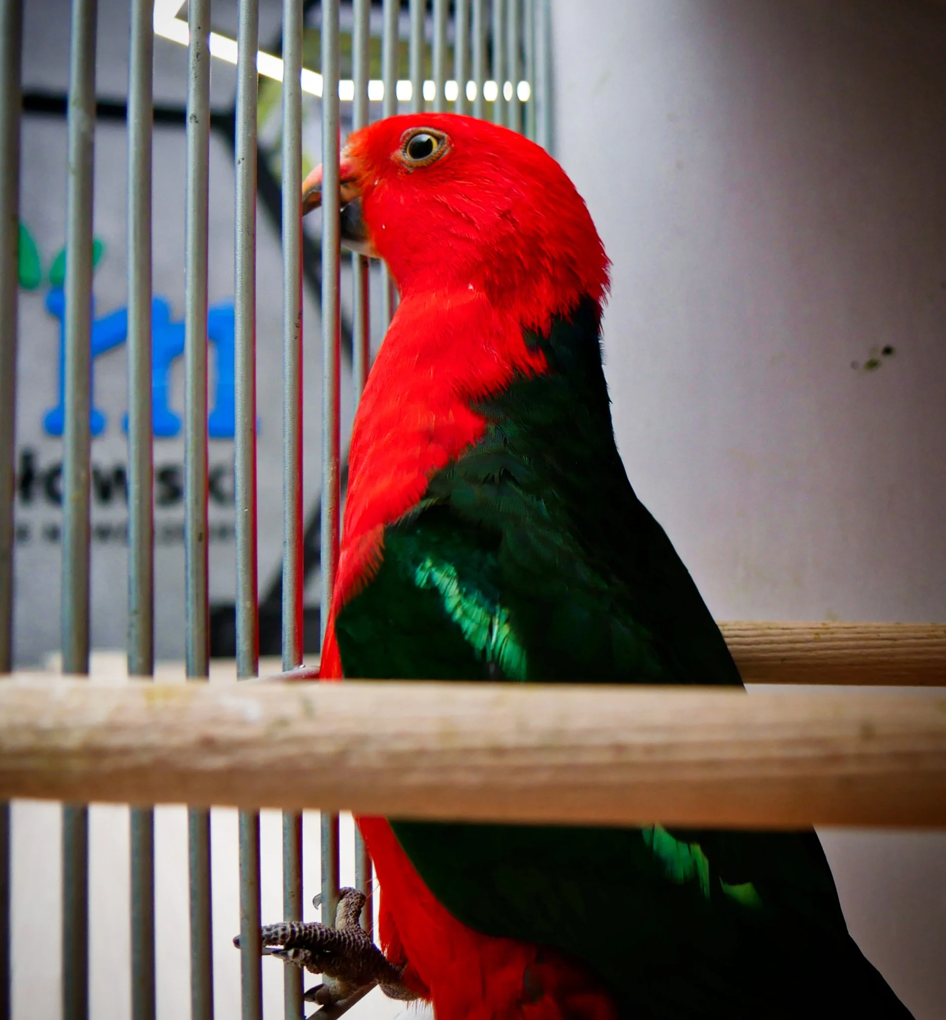 Papuga królewska szkarłatka w Starostwie Powiatowym w Mikołowie – ornitologiczny wicemistrz świata