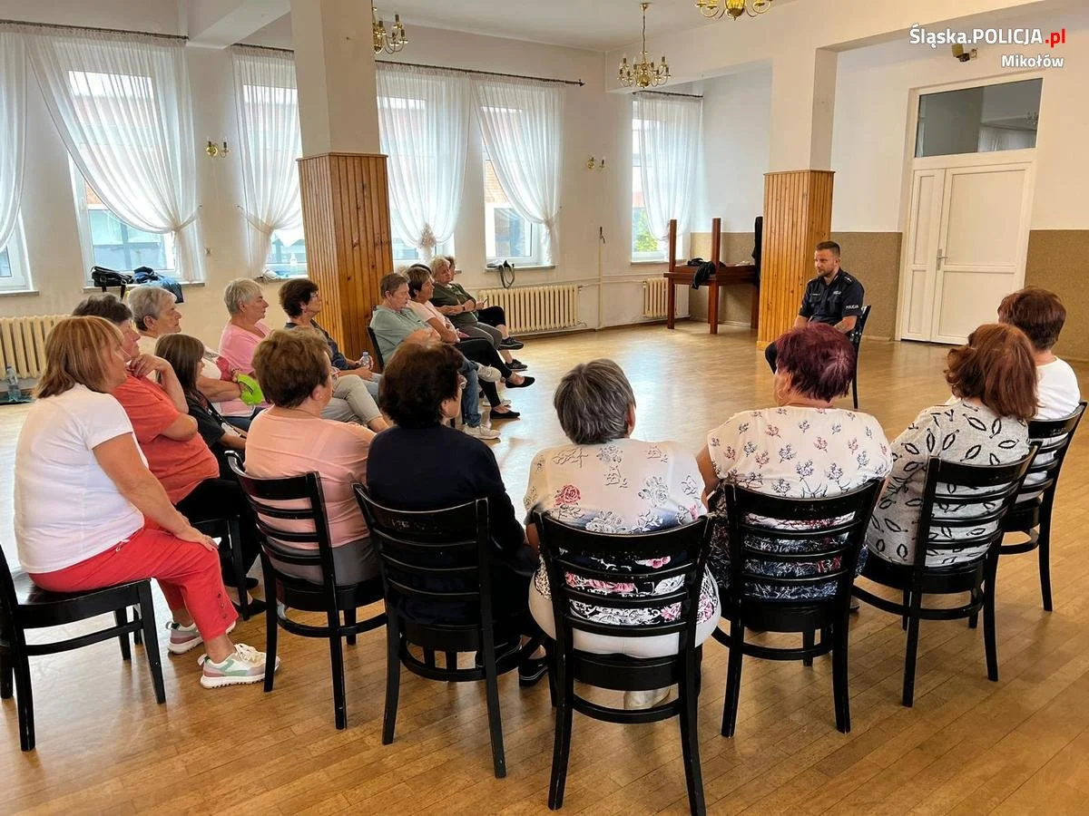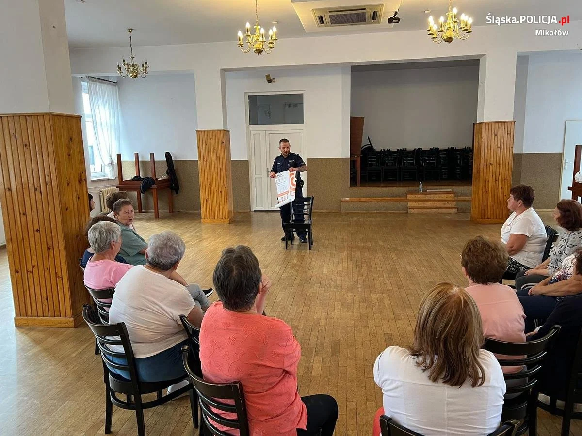 Mikołowscy policjanci każdego miesiąca, w trosce o bezpieczeństwo seniorów przeprowadzają spotkania, podczas których przestrzegają seniorów przed oszustwami oraz innymi zagrożeniami, na jakie są narażone starsze osoby.