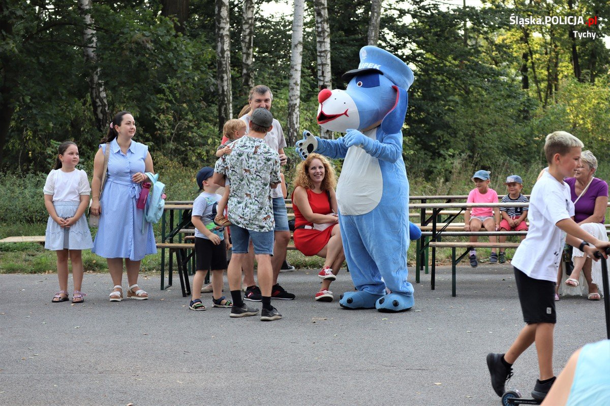 W trakcie wydarzenia policjanci z Tychów prowadzili również stoisko profilaktyczne, gdzie przypominali uczestnikom, jak ważne jest bezpieczeństwo, zarówno na co dzień, jak i w sytuacjach kryzysowych. Dzieci i dorośli mieli okazję nauczyć się udzielania pierwszej pomocy, a najmłodsi z radością witali się z “Sznupkiem” – maskotką śląskiej policji.