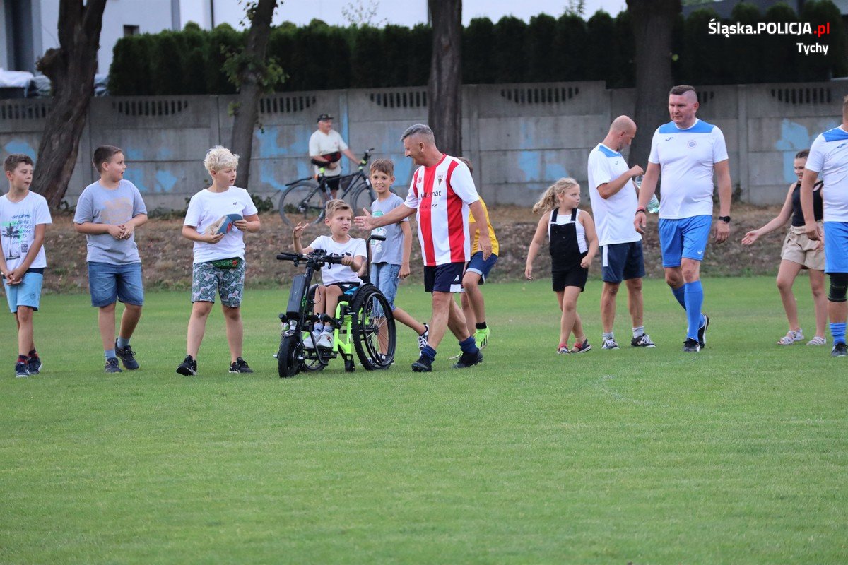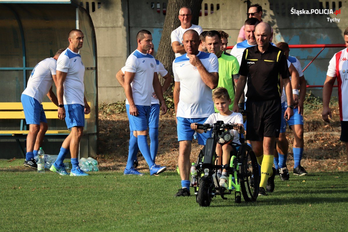 Jednym z głównych punktów programu był emocjonujący mecz piłki nożnej, w którym zmierzyli się zawodnicy Oldbojów GKS-u Tychy oraz drużyna policjantów z Tychów i Mikołowa, wspieranych przez rodzinę i przyjaciół Jasia. Mecz przyciągnął licznych kibiców, którzy z entuzjazmem dopingowali oba zespoły, a cel akcji – zbiórka funduszy na rehabilitację oraz sprzęt medyczny dla chłopca – zjednoczył wszystkich obecnych.