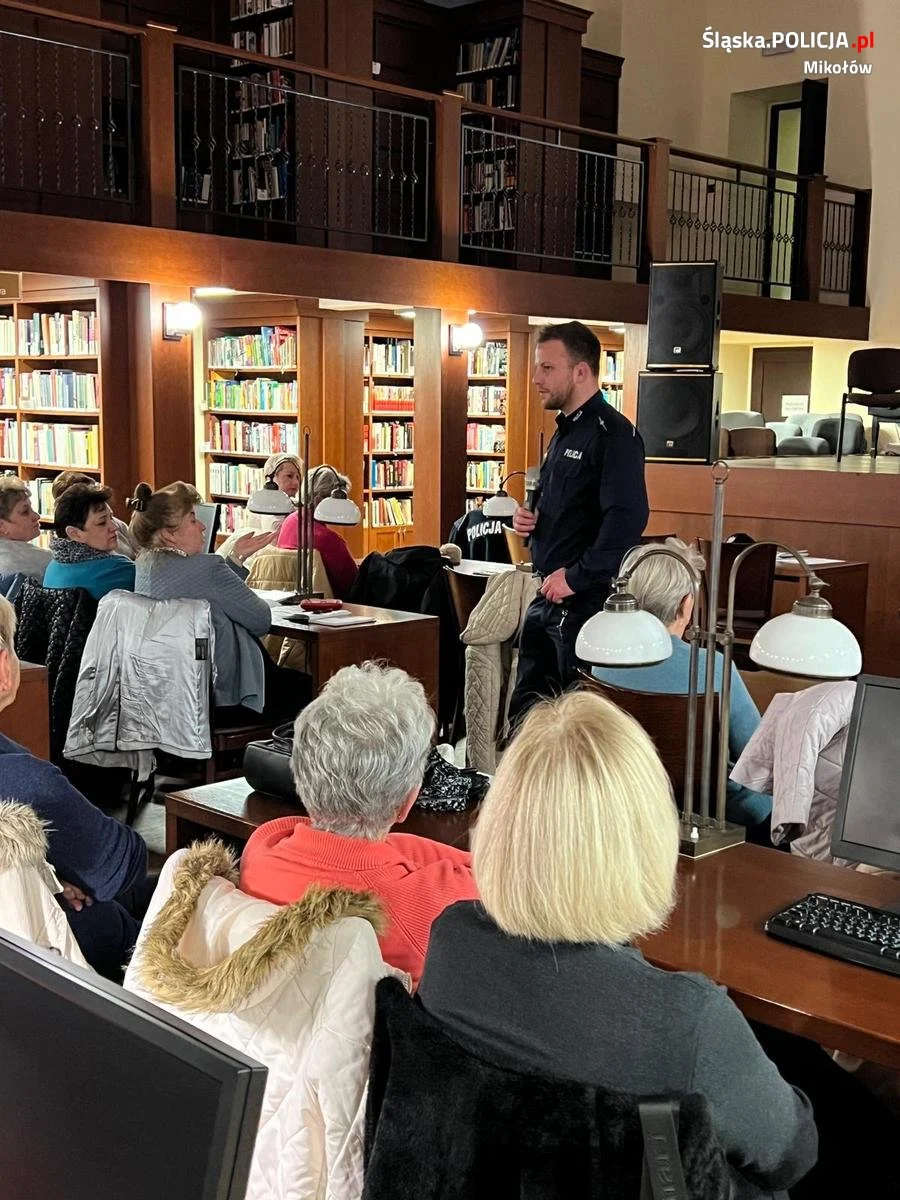 Policyjny profilaktyk na spotkaniu z mikołowskimi seniorami