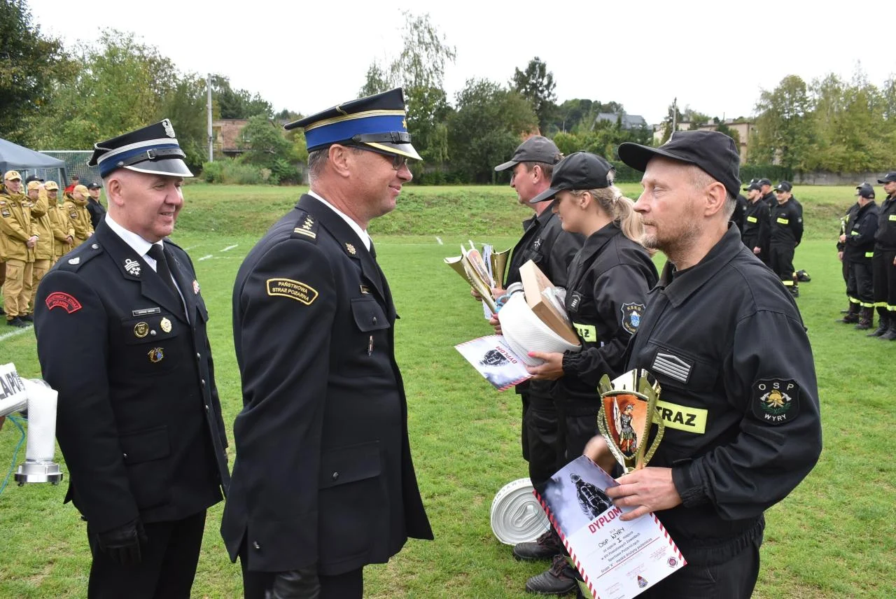 Nagrody wręczyli: poseł Łukasz Osmalak, wicewojewoda Michał Kopański, wiceprezes WFOŚiGW w Katowicach Iwona Gejdel-Targosz, komendant KP PSP Mikołów Radosław Radkowski, prezes Zarządu Powiatowego OSP Dariusz Gaschi, wójt Wyr Joanna Pasierbek-Konieczny oraz naczelnik Wydziału Zarządzania Bezpieczeństwem starostwa Bartłomiej Depta. Poza pucharami i medalami przyznano również nagrodę dla najmłodszego uczestnika zawodów, którym okazał się dziesięcioletni Oliwier Brandys z OSP Gardawice.