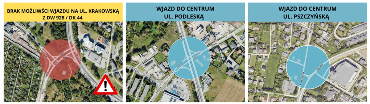 Jak poinformowała firma Budimex SA, odpowiedzialna za realizację inwestycji, 23 czerwca ruszają prace drogowe na skrzyżowaniu ulic Krakowskiej i Bielskiej (droga wojewódzka nr 928). W związku z tym skrzyżowanie zostanie całkowicie zamknięte dla ruchu kołowego.