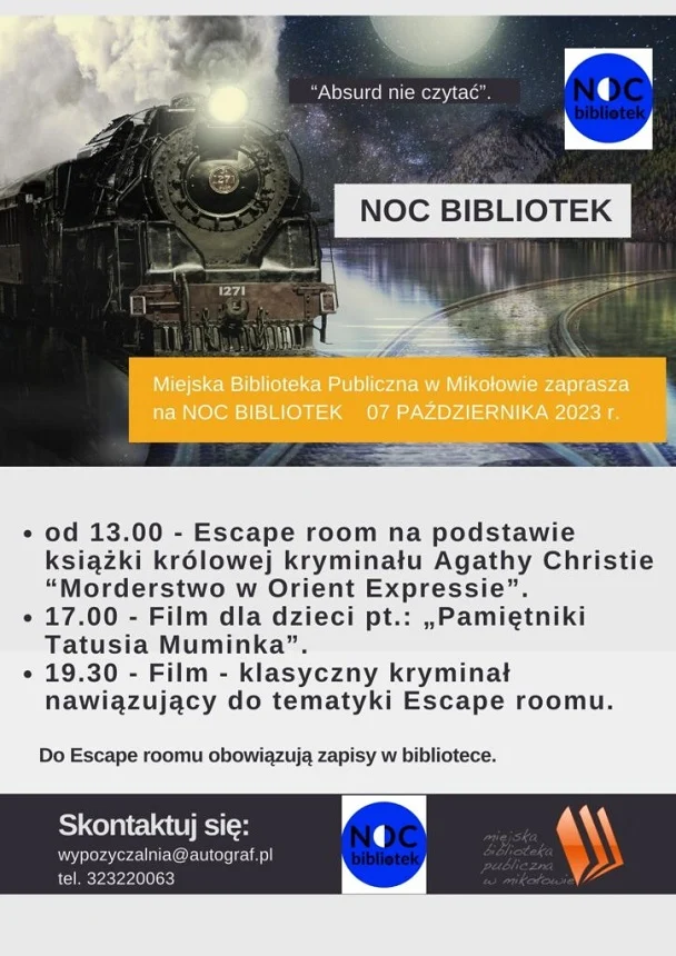 Miejska Biblioteka Publiczna w Mikołowie zaprasza w sobotę 7 października na kolejną edycję ogólnopolskiej akcji Noc Bibliotek pod hasłem „Absurd nie czytać”.