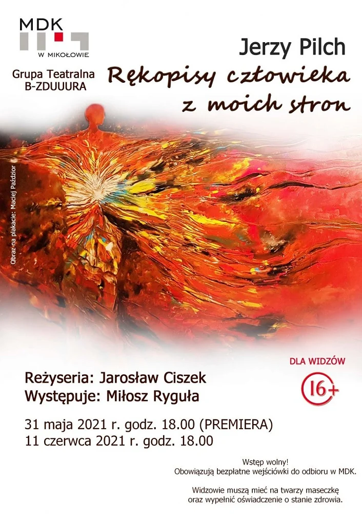 Miłosz Ryguła (jako aktor) i Jarosław Ciszek (jako reżyser) z Grupy Teatralnej B-ZDUUURA przy MDK w Mikołowie postanowili pochylić się nad literacką spuścizną zmarłego przed rokiem pisarza. Tak powstał monodram „Rękopisy człowieka z moich stron”, na podstawie opowiadania pod tym samym tytułem z tomu „Moje pierwsze samobójstwo”.