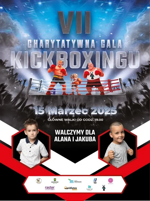 Już 15 marca o godzinie 18:00 w Hali MOSiR Mikołów odbędzie się VII Charytatywna Gala Kickboxingu. Całkowity dochód ze sprzedaży cegiełek w cenie 100 złotych zostanie przeznaczony na pomoc dla Alana i Jakuba – mieszkańców, którzy potrzebują wsparcia.