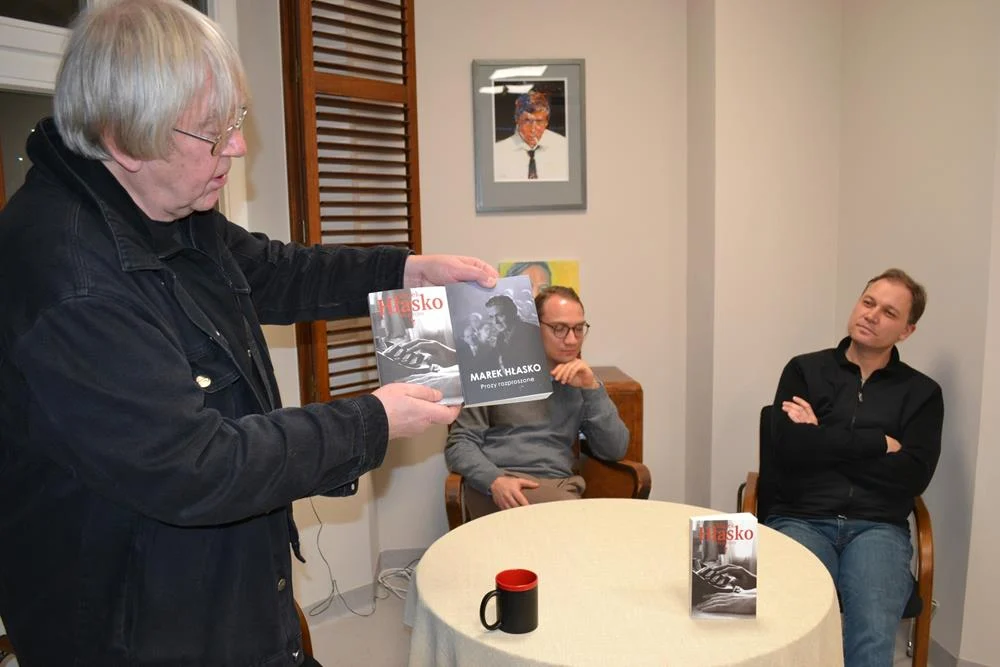 W ramach premiery książek Marka Hłaski: „Felietony” (wyd. Iskry, 2025) i „Proza rozproszona” (wyd. IM, 2025), odbyło się spotkanie z Radosławem Młynarczykiem, który opowiedział o pracy nad tymi publikacjami. Spotkanie zostało połączone z wernisażem wystawy poświęconej życiu i twórczości Marka Hłaski, której autorem jest Andrzej Czyżewski. Wystawa została zaprezentowana w sąsiedniej sali, a jej otwarcie poprzedziła opowieść Agnieszki Czyżewskiej o procesie tworzenia tej ekspozycji, związanym z pracą nad biografią Hłaski „Piękny dwudziestoletni”.