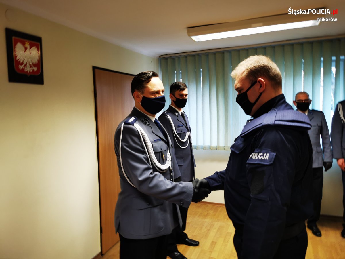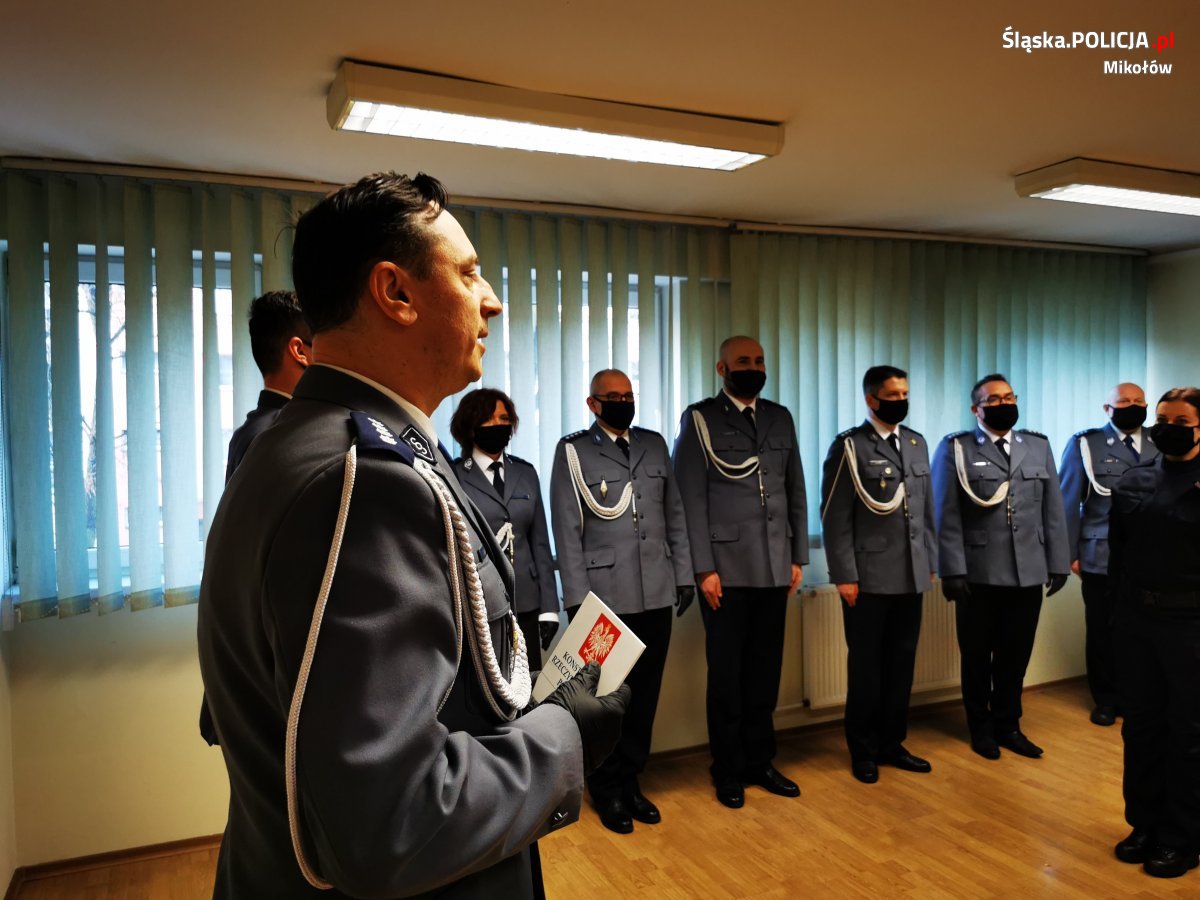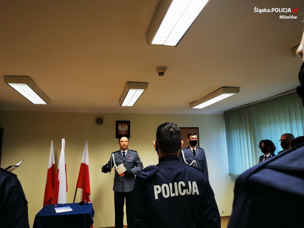 Po części formalnej szef mikołowskich stróżów prawa wygłosił krótkie przemówienie, podczas którego wskazał, iż służba w Policji to praca dająca wiele satysfakcji, stabilne zatrudnienie, a także oferująca możliwość rozwijania się. Jednak przede wszystkim służba w Policji to jednak działanie na rzecz bezpieczeństwa innych, pomoc bezbronnym i pokrzywdzonym, które stanowią źródło ogromnej satysfakcji.