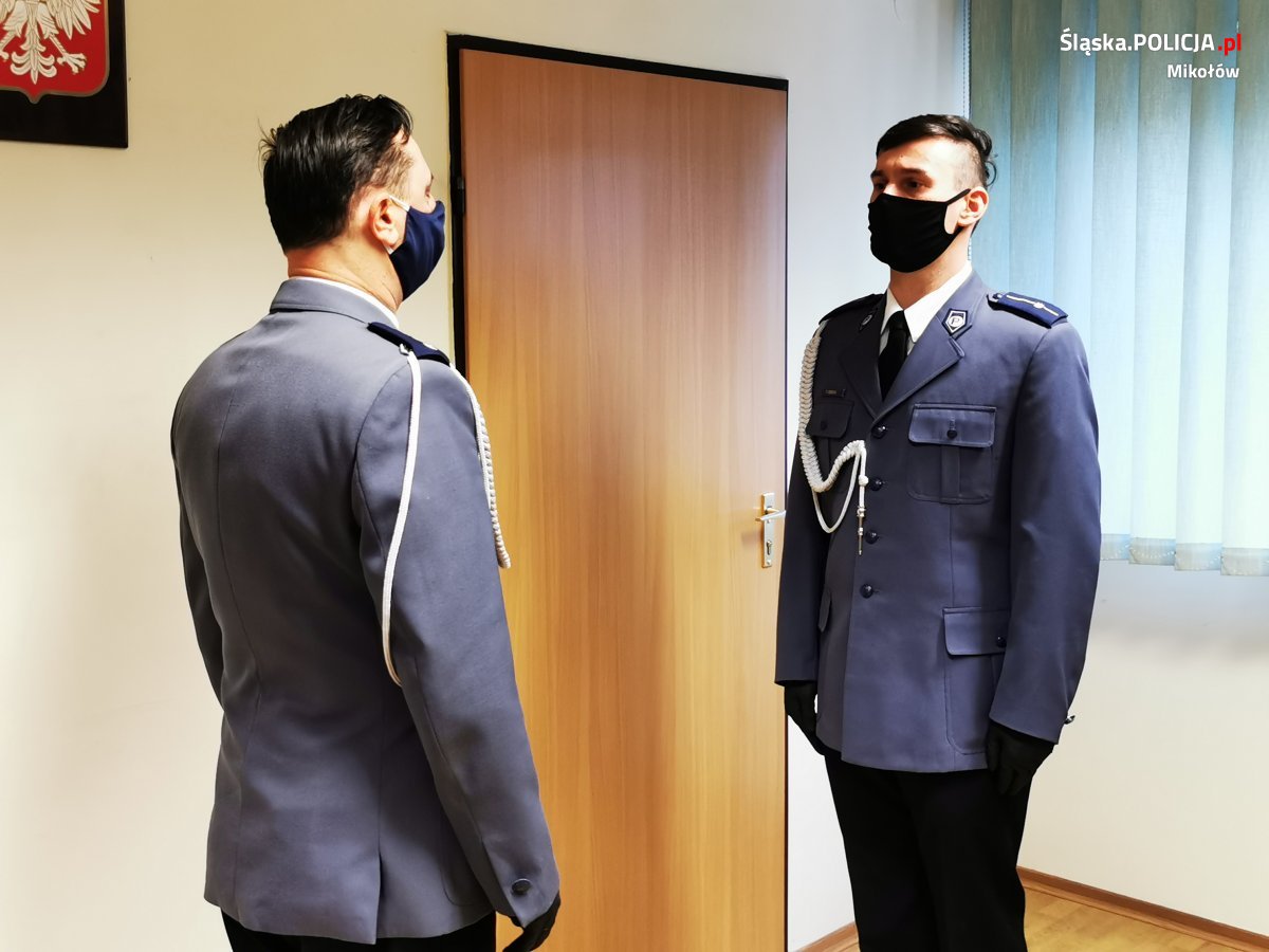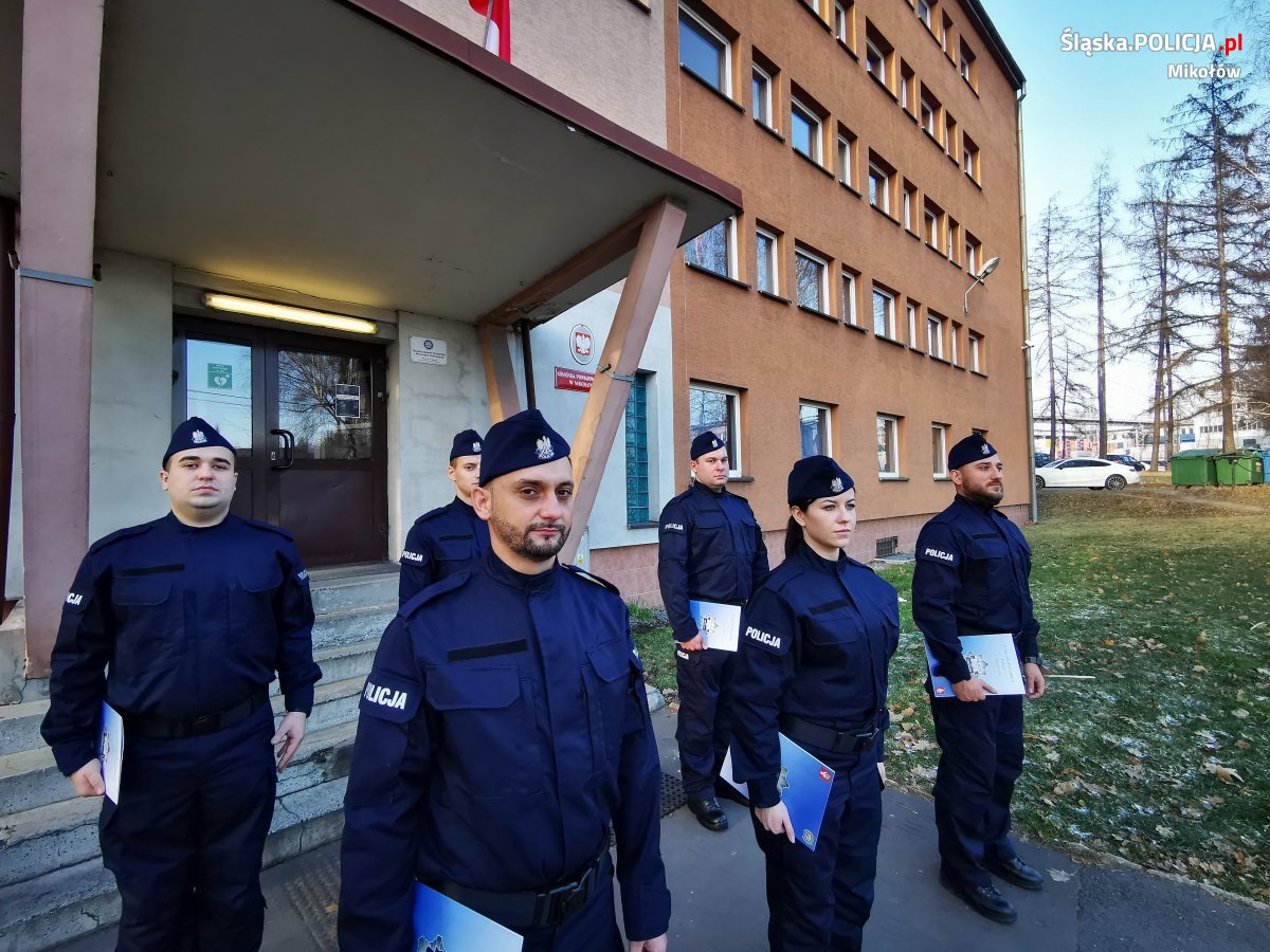 Posterunkowi: Aleksandra Bąk, Rafał Białas, Robert Kubis, Adam Wieczorek, Tomasz Cempura oraz Kamil Hulbój już jutro rozpoczynają kurs podstawowy w Szkole Policji w Katowicach. Po jego zakończeniu rozpoczną służbę w mikołowskiej komendzie oraz komórkach patrolowych komisariatów Policji w Orzeszu i Łaziskach Górnych.