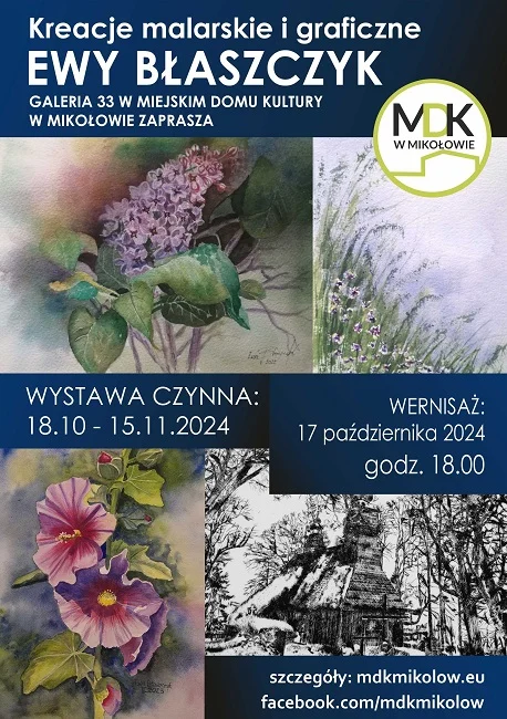 Do 15 listopada w Galerii 33 można oglądać wystawę prac Ewy Błaszczyk. Wernisaż wystawy odbył się 17 października.