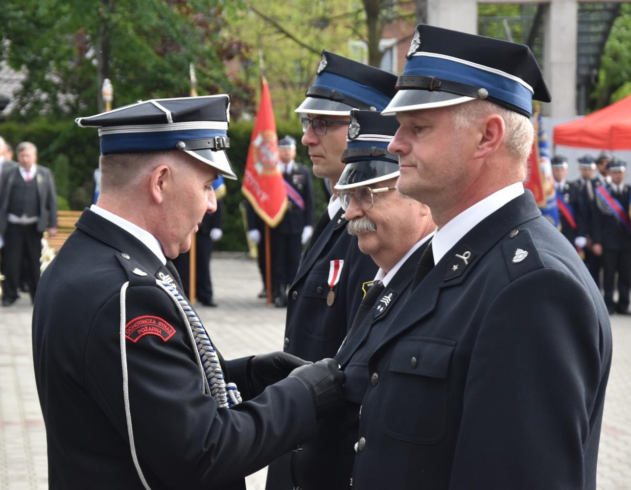 Po mszy uczestnicy udali się na teren Komendy Powiatowej PSP, gdzie odbyła się ceremonia wręczenia medali i odznaczeń. Złote Medale Za Zasługi Dla Pożarnictwa otrzymali Eugeniusz Ferdus oraz Łukasz Mroczek z OSP Łaziska Średnie, a Srebrny Medal przyznano Łukaszowi Pietrzykowi. Brązowe odznaczenie otrzymał Mirosław Hajok z OSP Paniowy.