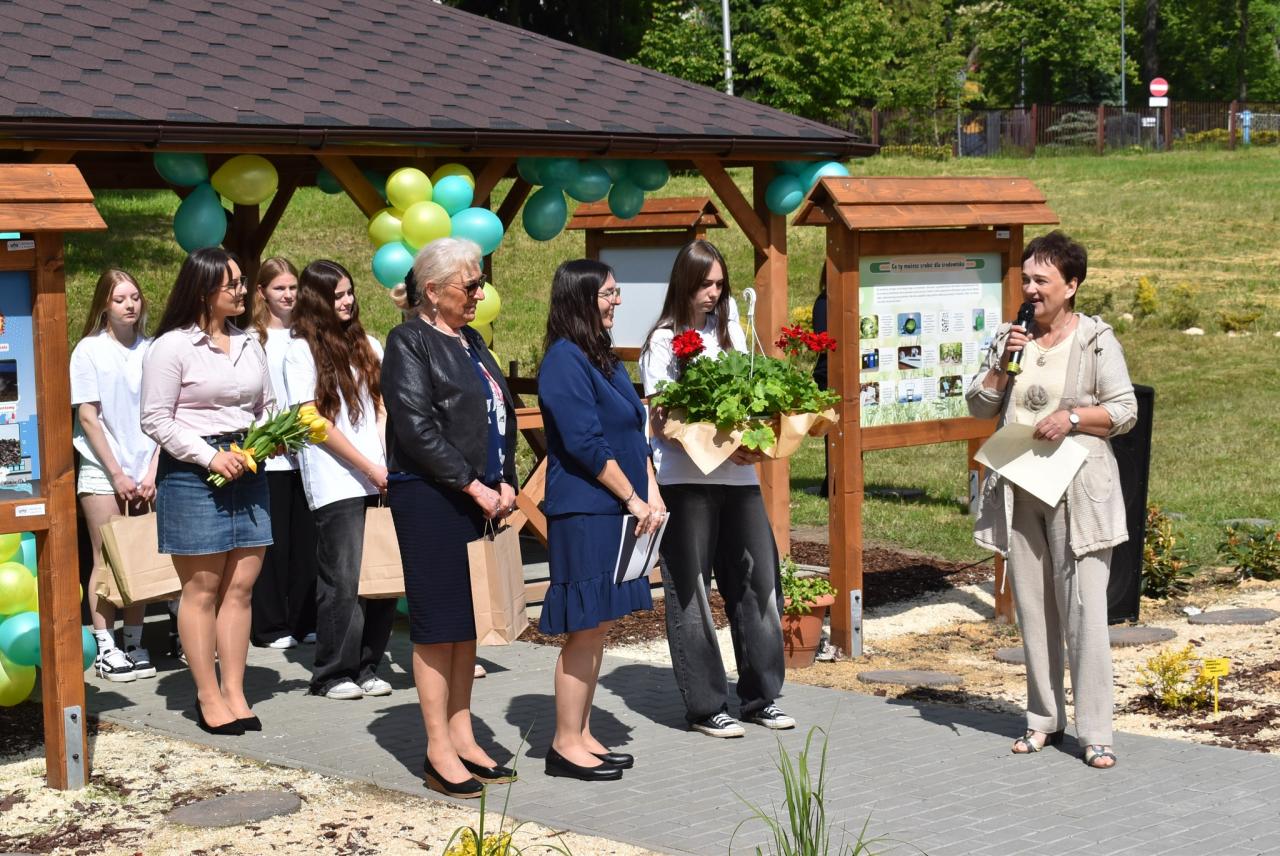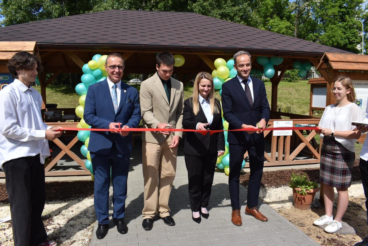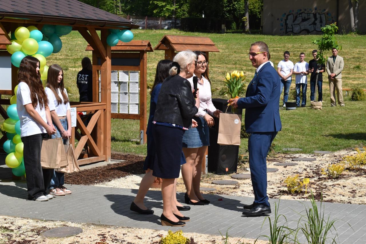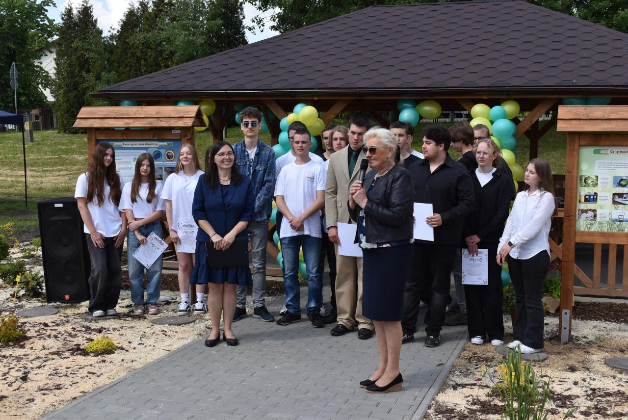 Wicedyrektor ZST, Róża Włodarz, podkreśliła, że projekt powstał dzięki pomysłowi Aleksandry Niczyporuk, byłej dyrektor Elżbiety Jabłońskiej oraz pracy uczniów i nauczycieli, którzy przygotowali teren, zamontowali wiatę, tablice edukacyjne oraz wykonali nasadzenia. Podczas otwarcia obecni byli m.in. poseł Łukasz Osmalak, wicewojewoda Michał Kopański, wiceprezes WFOŚiGW Iwona Gejdel-Targosz, wicestarosta Jarosław Sworzeń oraz przedstawiciele samorządu, nauczycieli, uczniów i sponsorów. Symbolicznym elementem uroczystości było przecięcie wstęgi i zasadzenie dębu, co nazwano wejściem w drugie stulecie istnienia szkoły.