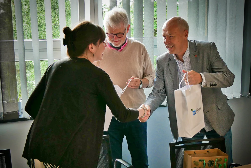 Podczas spotkania staroście mikołowskiemu towarzyszyły: członkini Zarządu Powiatu Mikołowskiego Grażyna Nazar oraz naczelnik Wydz. Rozwoju, Zdrowia i Promocji Aleksandra Łataś-Makuch, która w czwartek zorganizowała dla niemieckich gości oprowadzanie po Muzeum Śląskim w Katowicach.