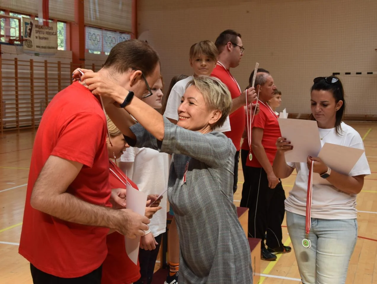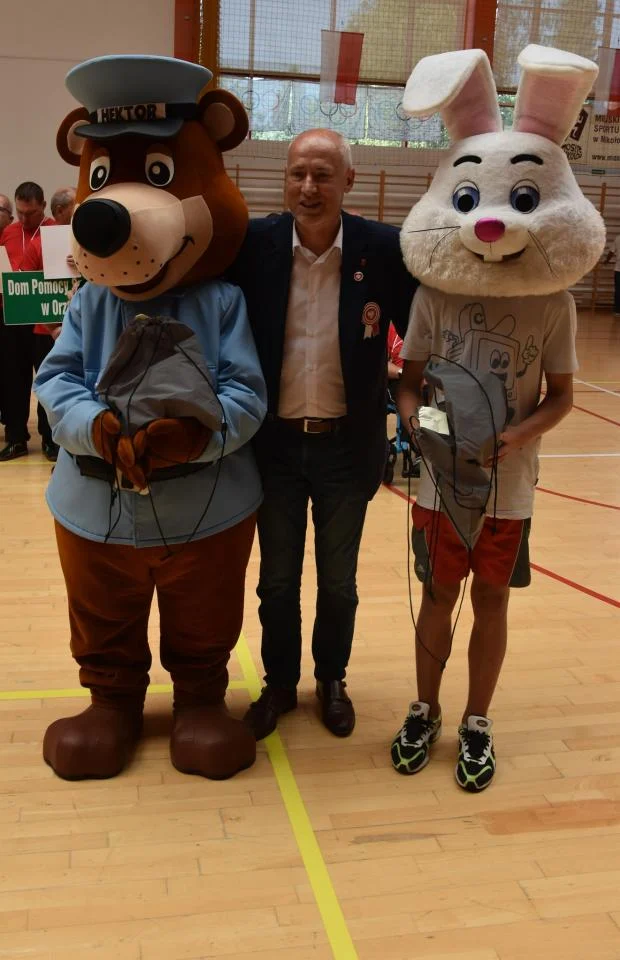 Ponadto każdy uczestnik otrzymał medal i dyplom, a drużyny oraz ich kibice zdobyli nagrody rzeczowe. Nagrody te wręczyli Starosta Mirosław Duży, Grażyna Nazar, członkini Zarządu Powiatu, oraz Jadwiga Krajewska, dyrektor Domu Pomocy Społecznej w Orzeszu.