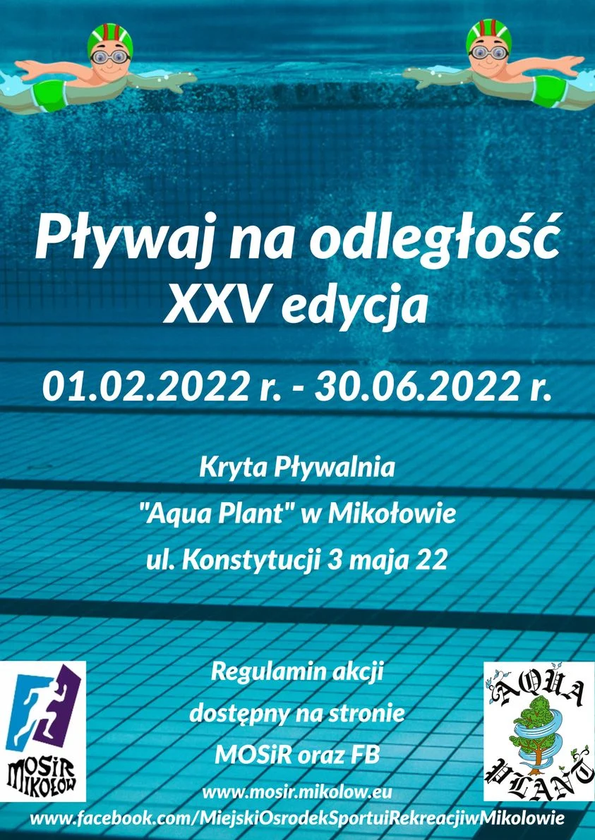 Miejski Ośrodek Sportu i Rekreacji w Mikołowie zaprasza wszystkich miłośników pływania do wzięcia udziału w XXV edycji akcji “Pływaj na odległość”, która rozpocznie się 1 lutego i potrwa do 30 czerwca br.